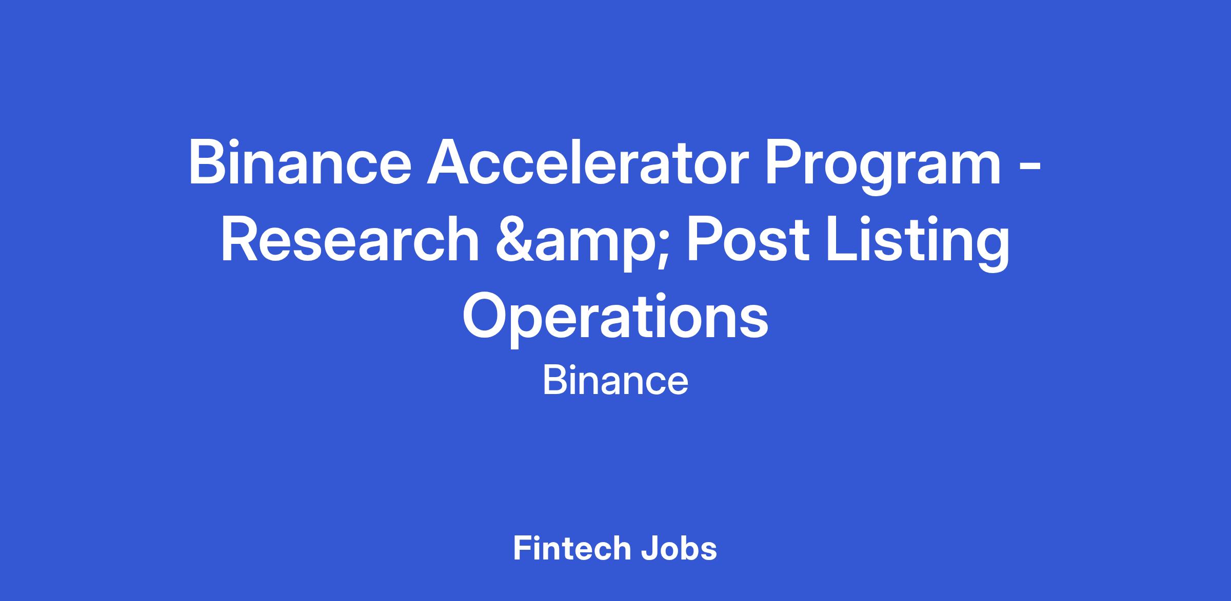 Binance Accelerator Program - Research & Post Listing Operations
