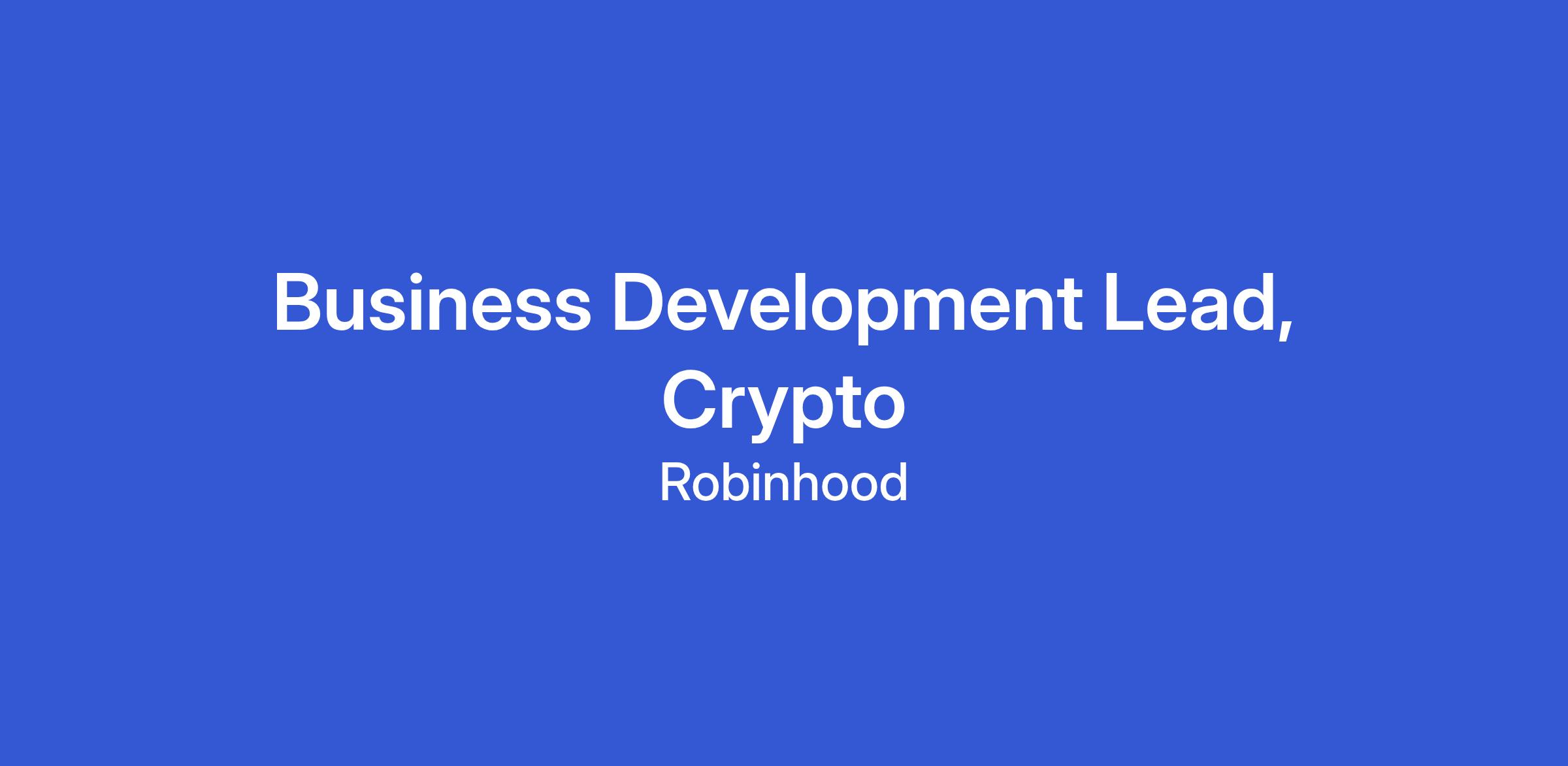 Business Development Lead, Crypto