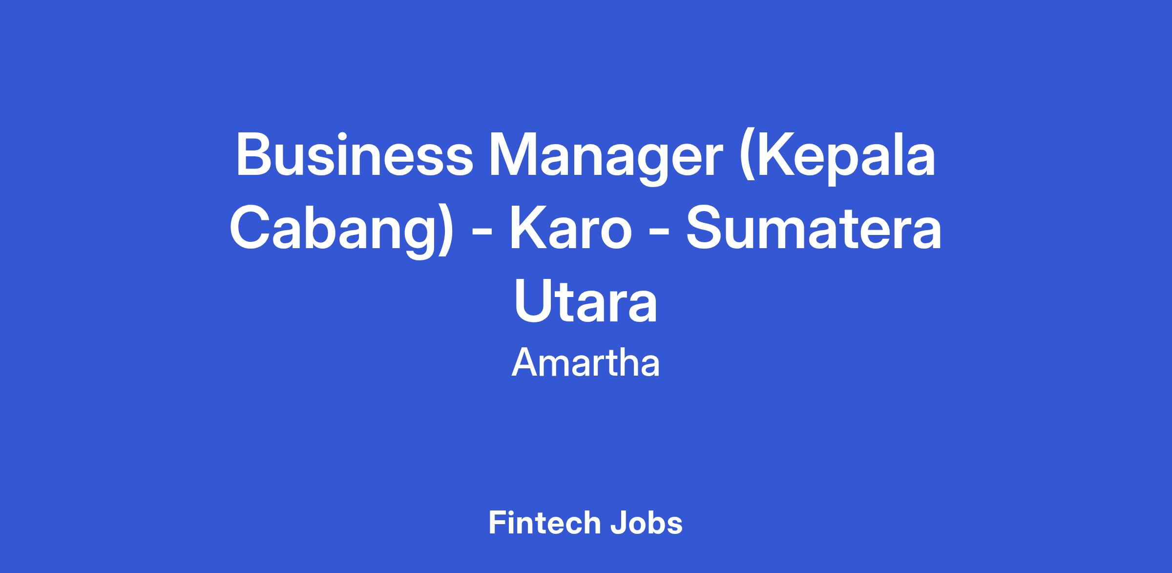 Business Manager (Kepala Cabang) - Karo - Sumatera Utara