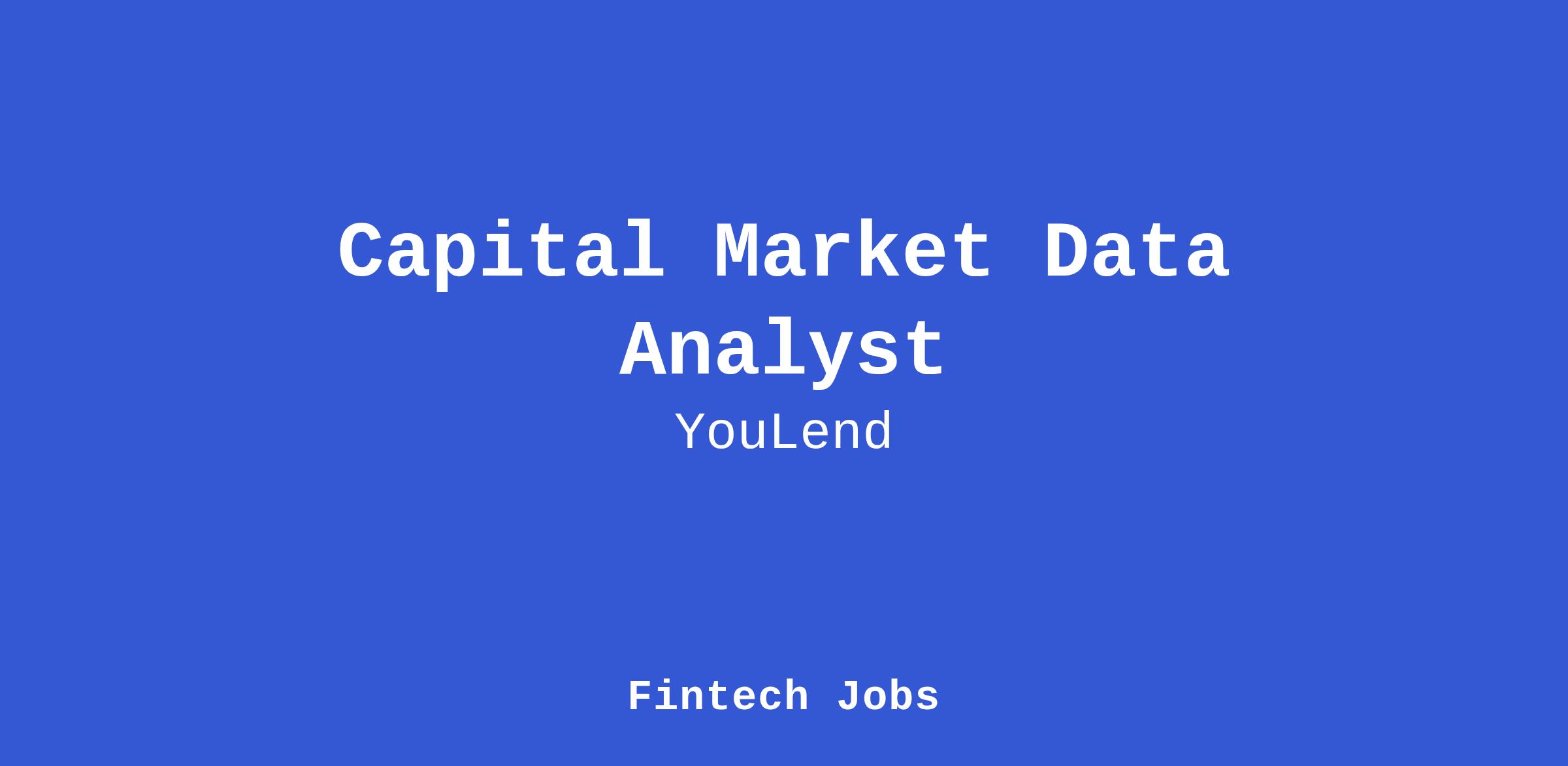 To meet the growing demand for our technology and services, we are now seeking Capital Markets Data Analyst to join our Finance/Capital Markets team. Being one of the fastest growing Fintech businesses globally we are looking for exceptionally talented and self-motivated individual who has a desire to build a career within the Company.