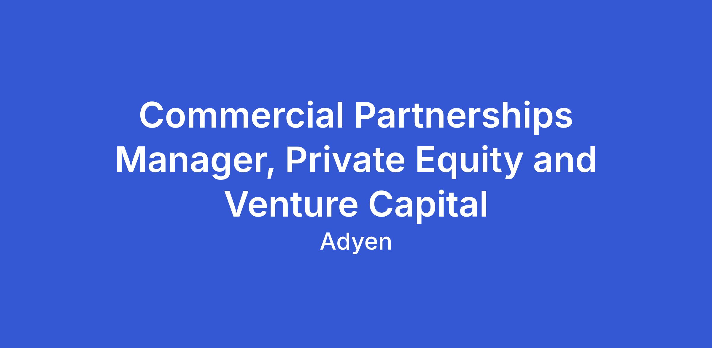 Commercial Partnerships Manager, Private Equity and Venture Capital