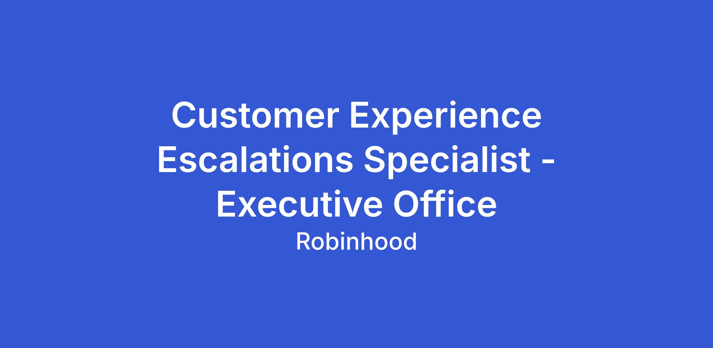 As a Customer Experience Escalations Specialist, you will investigate and resolve sensitive customer cases that require advanced problem-solving, sound judgment, and strong communication. You’ll collaborate with cross-functional partners to ensure timely resolution of complex issues while protecting the customer experience and the Robinhood brand.