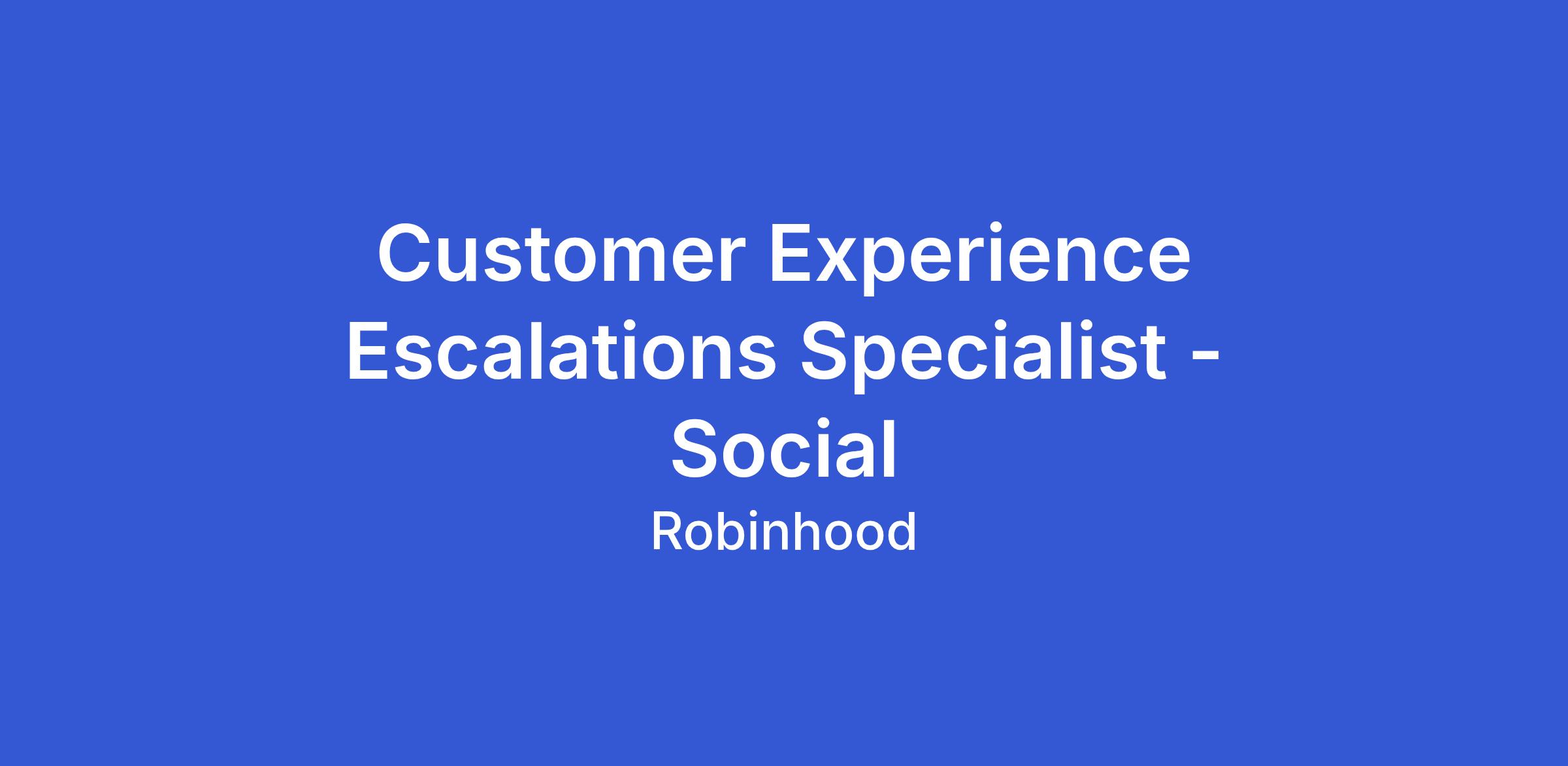 As a Customer Experience Escalations Specialist, you will investigate and resolve sensitive customer cases that require advanced problem-solving, sound judgment, and strong communication. You’ll collaborate with cross-functional partners to ensure timely resolution of complex issues while protecting the customer experience and the Robinhood brand.