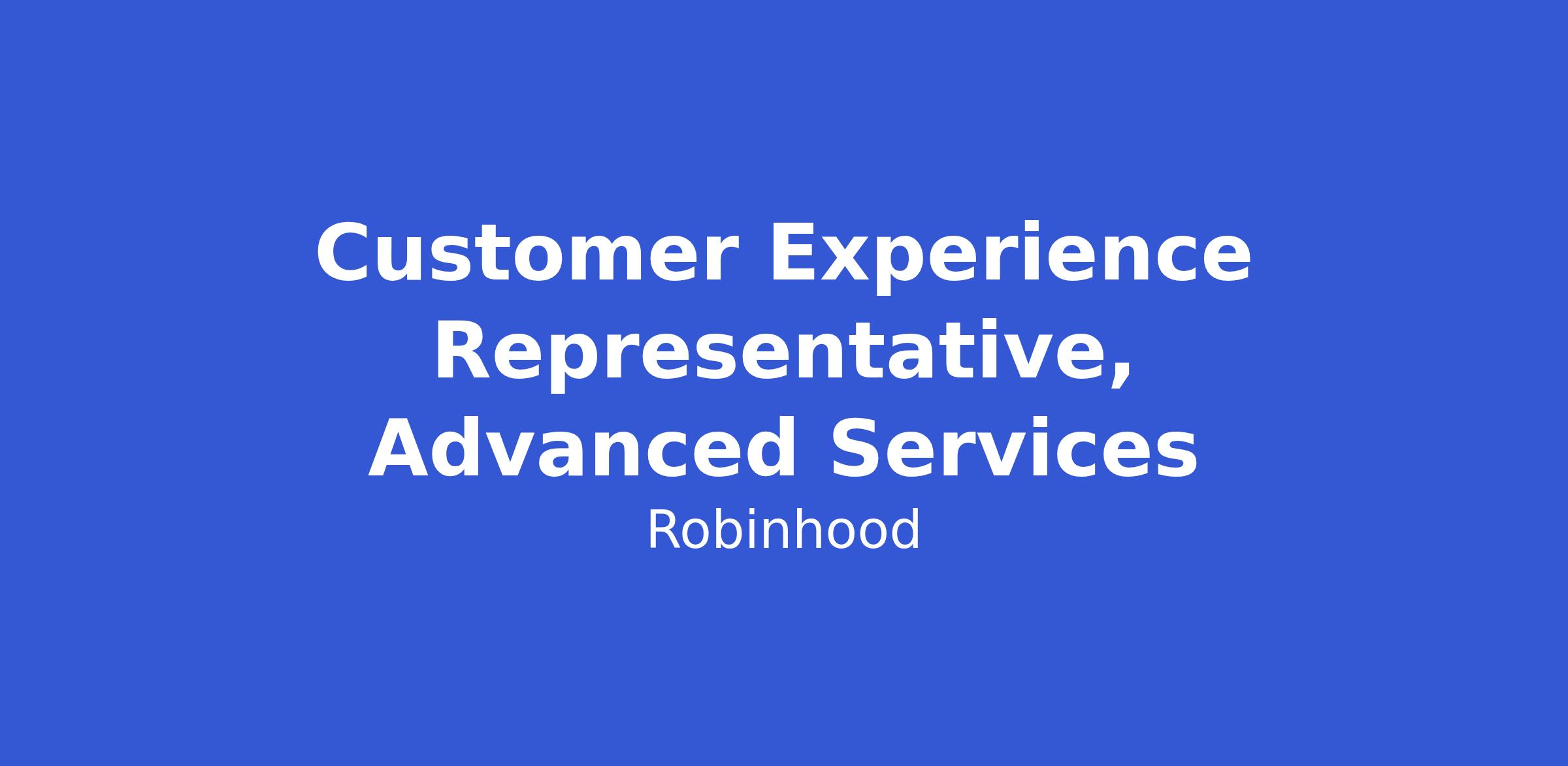 Robinhood's Customer Experience team is committed to providing an outstanding customer experience. In your role as an Advanced Services Representative, you will be empowered to help our customers with some of their most complex issues. In particular, your work will focus primarily on options trading and margin related issues experienced by our fast-growing customers. Your job is not only to help our customers with the issues they encounter, but empower them to learn and grow as traders. You will also play a critical role in providing feedback to business partners that help further enhance our product and platform, improving the customer experience.