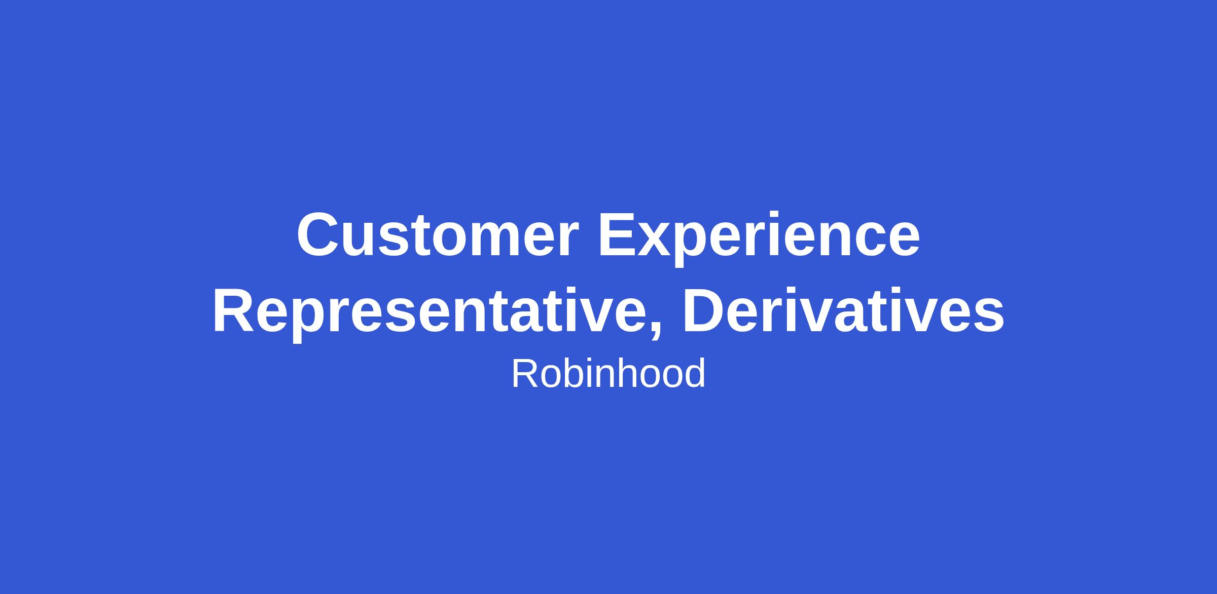 Robinhood is seeking experienced CX professionals with a passion for derivative products (futures, options on futures, forex, event contracts etc.) to join the Derivatives team. This team will support customers including power customers on complex topics including margin, options and futures. Robinhood Derivatives, LLC is a new Robinhood subsidiary looking to provide a best-in-class futures product, and later options on futures, forex, and futures across multiple account types.