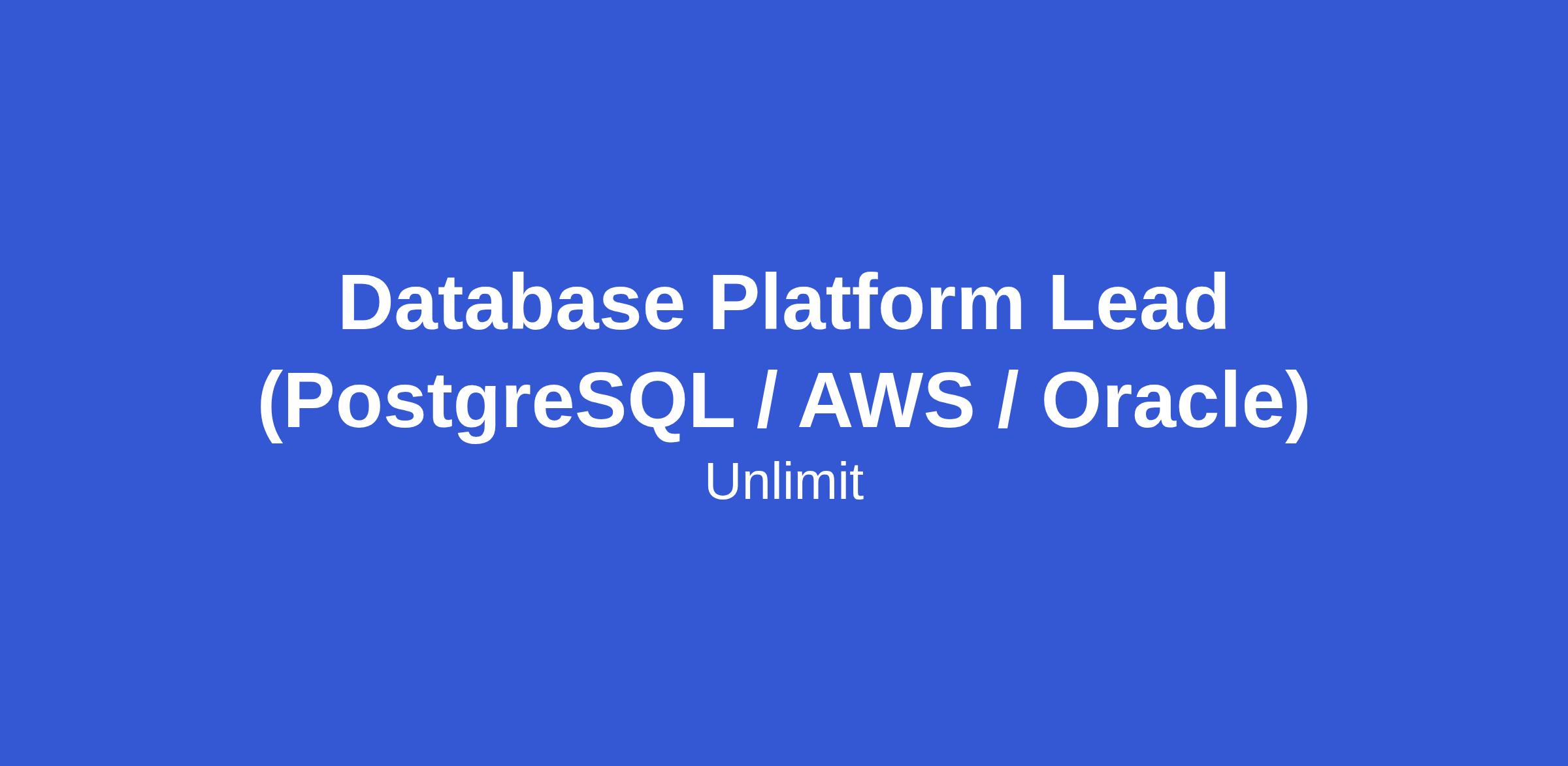 We are looking for a Database Platform Lead (PostgreSQL / AWS / Oracle) to take ownership of Unlimit’s database platform and lead its next stage of evolution.