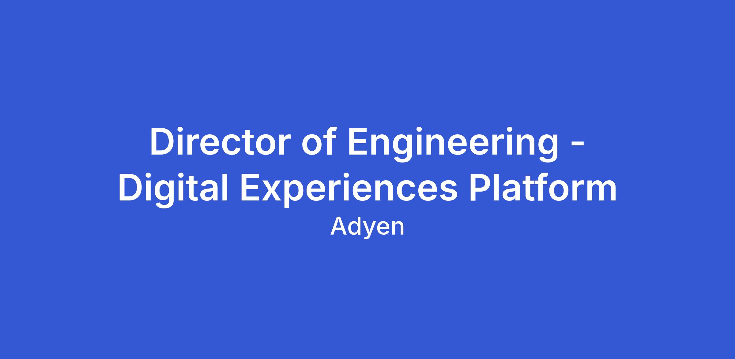 We are seeking a visionary, customer-obsessed leader to manage and grow high-performing teams responsible for scaling our Digital Experiences Platform at Adyen. This platform is the central interface where merchants seamlessly manage their payment, financial, and data workflows in a powerful, cohesive environment.