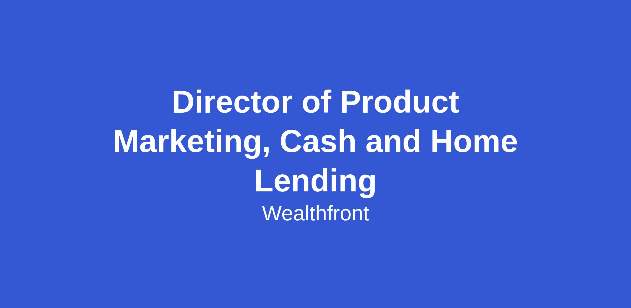 Wealthfront is looking for an experienced Director of Product Marketing to lead go-to-market strategy for our Banking and Home Lending businesses. As the newest member of the growing Marketing org at Wealthfront, you’ll help shape a world class Product Marketing team while diving deep into customer insights, crafting product narratives, leading go-to-market efforts, and identifying new growth opportunities. You’ll work closely with partners across the company, in Product, Engineering, Design, Insights, and others.