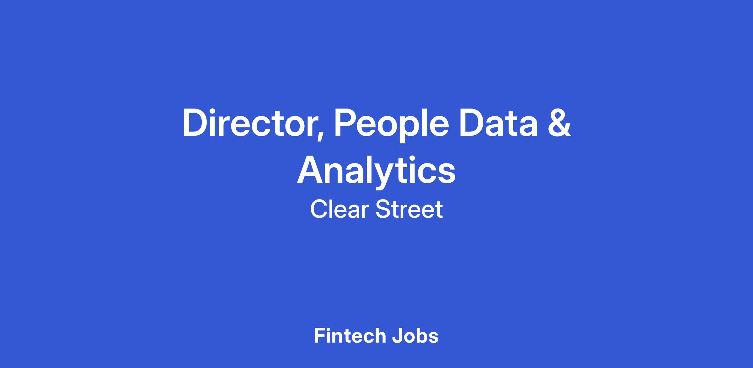 The Director of People Data & Analytics will lead Clear Street’s people analytics strategy, transforming workforce data into actionable insights that inform decision-making and shape organizational strategy. This role is responsible for advancing data governance, analytics infrastructure, and reporting capabilities to ensure that leaders across the firm have access to accurate, timely, and meaningful workforce intelligence.