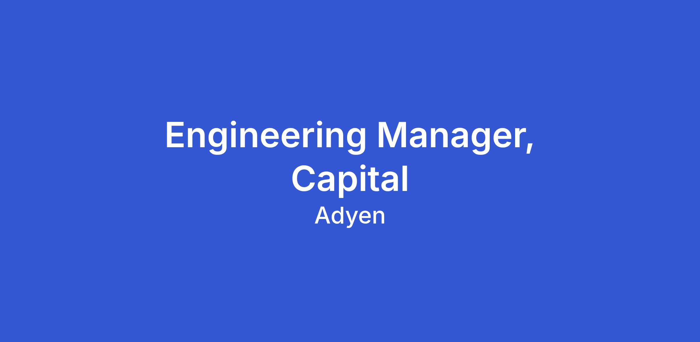 We’re looking for an Engineering Manager to lead the development of our Capital product, powering how businesses access financing options for their businesses. Capital is the next growth frontier as Adyen grows into a comprehensive financial service provider beyond Payments.