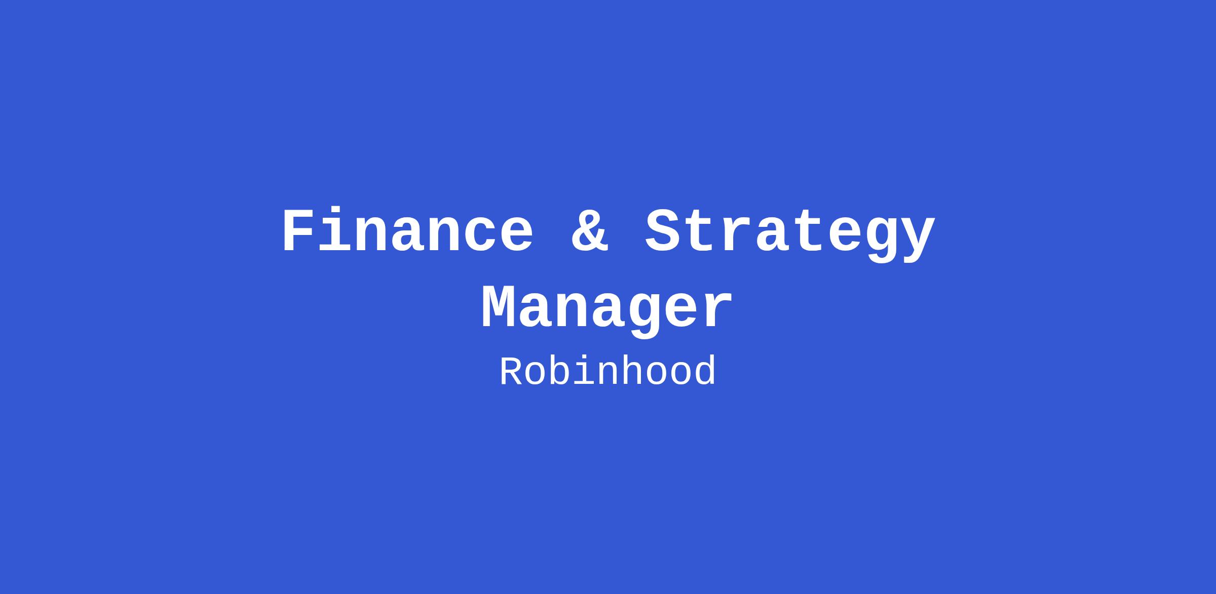 The Finance & Strategy team partners across Robinhood to drive long-term shareholder value by helping business leaders make strategic, financially sound decisions. We provide insights through analytics, build scalable frameworks for financial management, and help align the company’s operations and capital allocation to our corporate priorities.