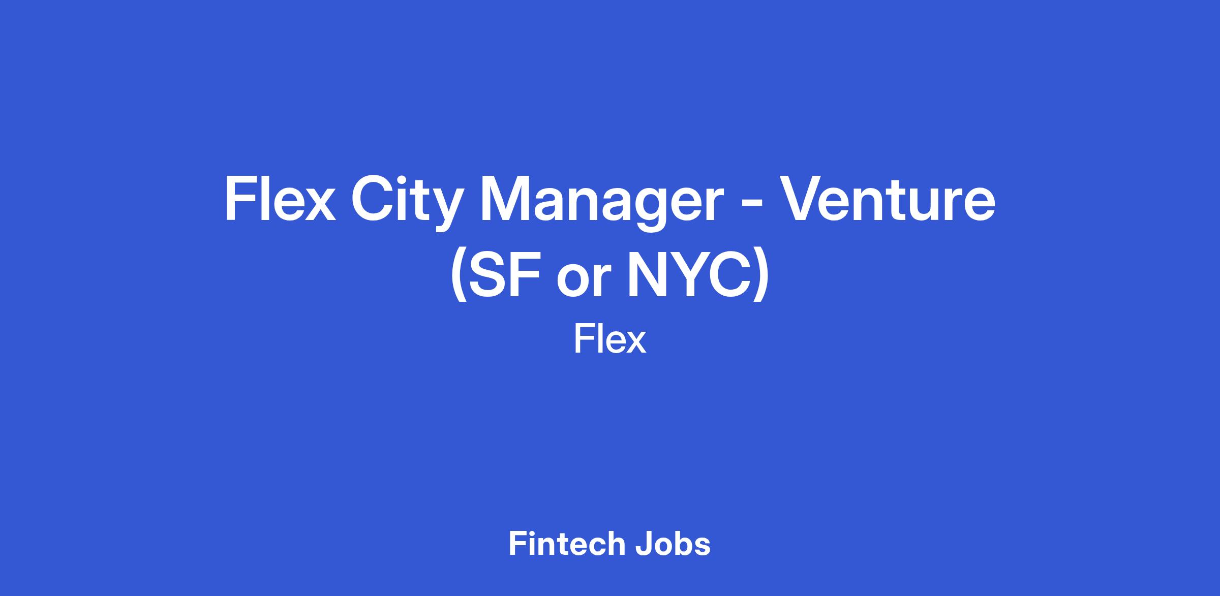 City Managers are the face of Flex in their geographic region or category. This is our first ever hire to own the venture and founder community.