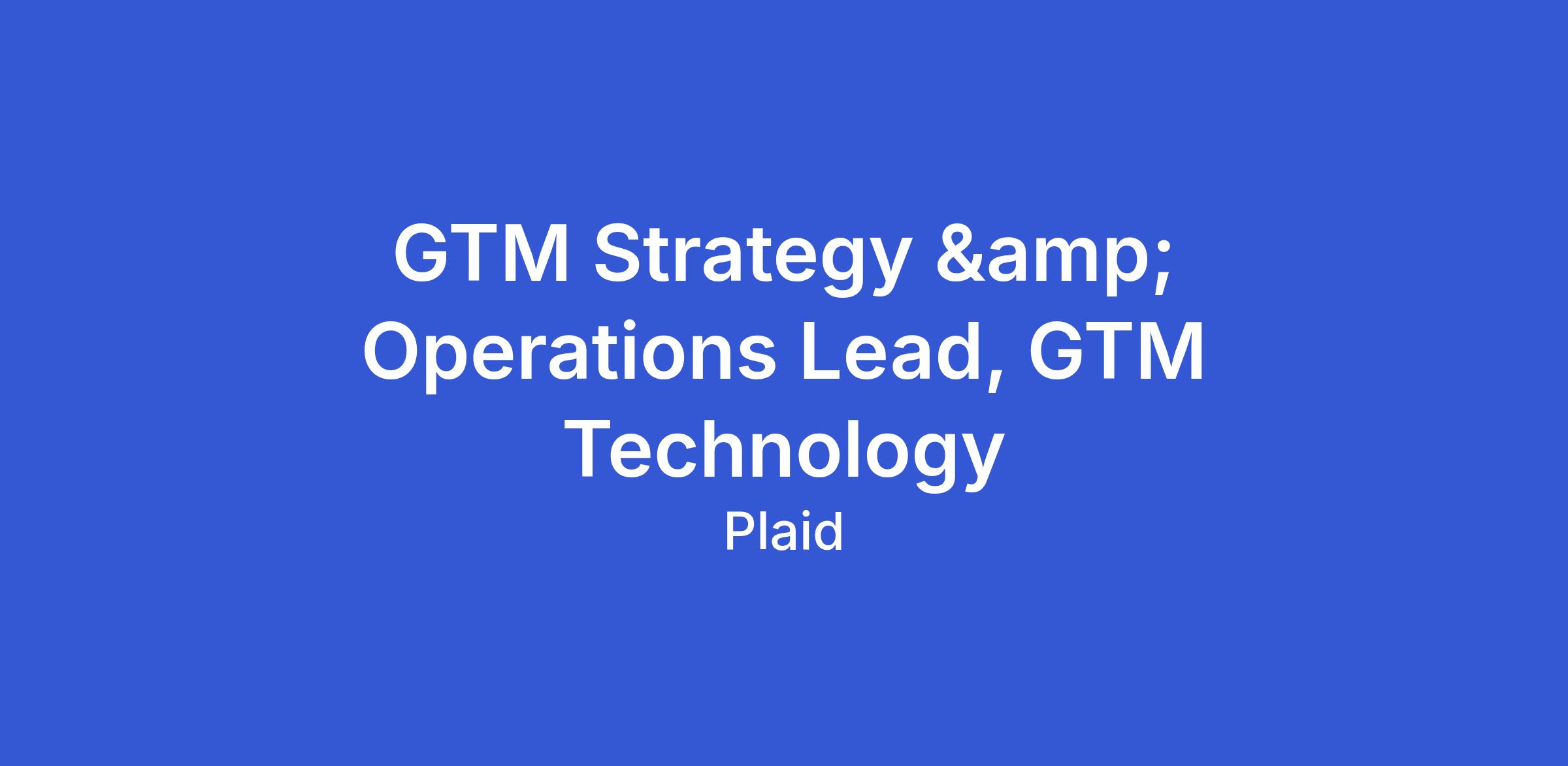 Responsibilities: - Define and execute the GTM technology strategy and multi-year roadmap, ensuring alignment with Plaid’s scaling needs, evolving GTM motions (sales-assisted, enterprise, partnerships), and long-term business objectives.