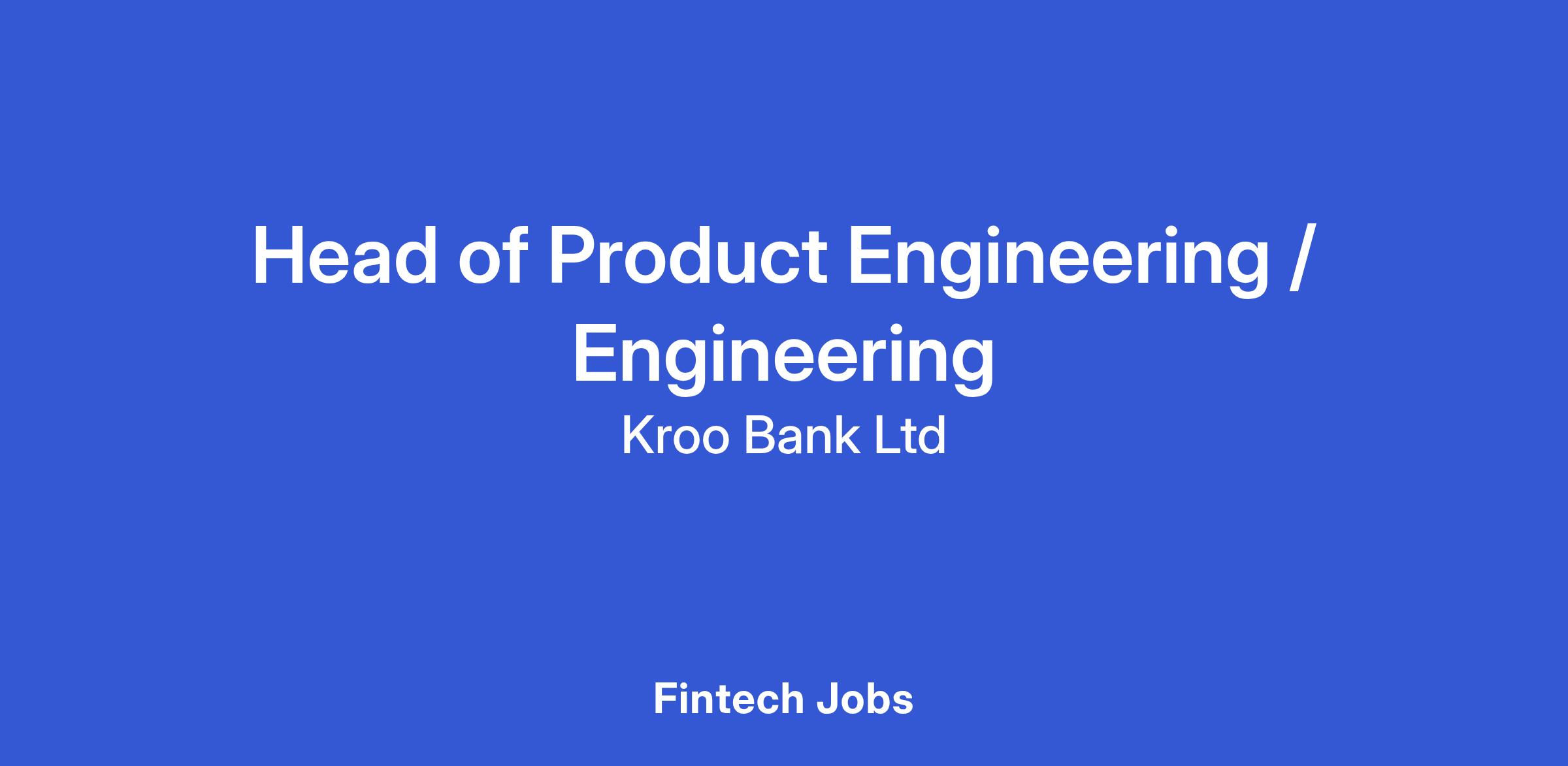The Head of Product Engineering / Engineering will be pivotal in translating Kroo Bank product and technology vision into secure, scalable and reliable digital platforms. This role carries bank wide responsibility for the leadership and delivery of product engineering and software engineering, ensuring customer centric, resilient and compliant experiences across our systems and channels. The successful candidate will balance hands-on technical leadership with people leadership, operational excellence and regulatory obligations, delivering outcomes that create value for customers and the business. Other responsibilities include: