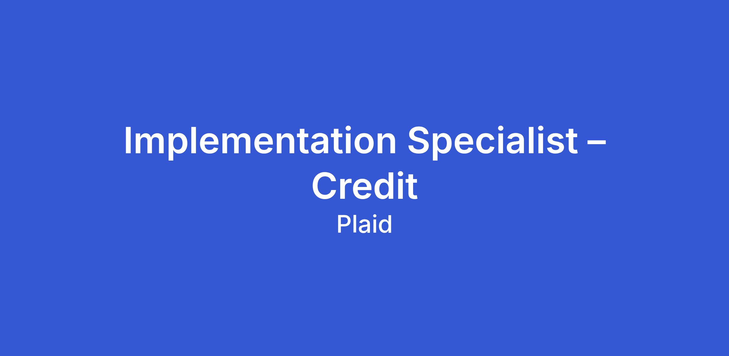 Implementation Specialists are responsible for guiding Plaid’s most strategic customers and partners as they integrate with Plaid solutions. In this role, you will be responsible for the implementation phase and ensure new Credit customers are properly onboarded and the Plaid solution is successfully implemented and launched, which is crucial for customer success as the integration often forms the foundation of their platform. Members of the Implementation team are expected to manage multiple implementations / customers and partners simultaneously, and to stay up to date on Plaid’s technology and new product offerings.