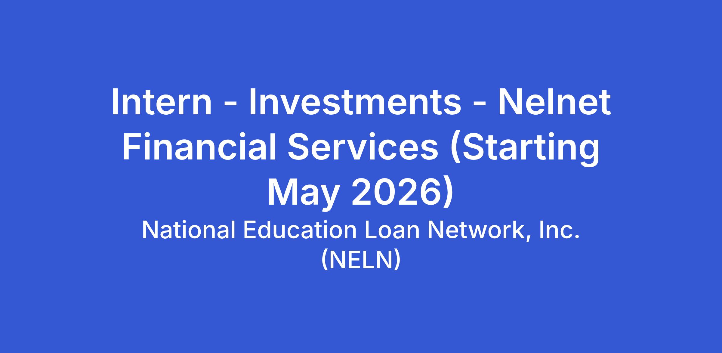 Nelnet Financial Services (NFS) is seeking an intern to join the NFS investments team, with a focus on structured finance investments/asset management. The hire will assist with a wide range of tasks related to the investment process including risk assessment, underwriting and performance tracking.JOB RESPONSIBILITIES: