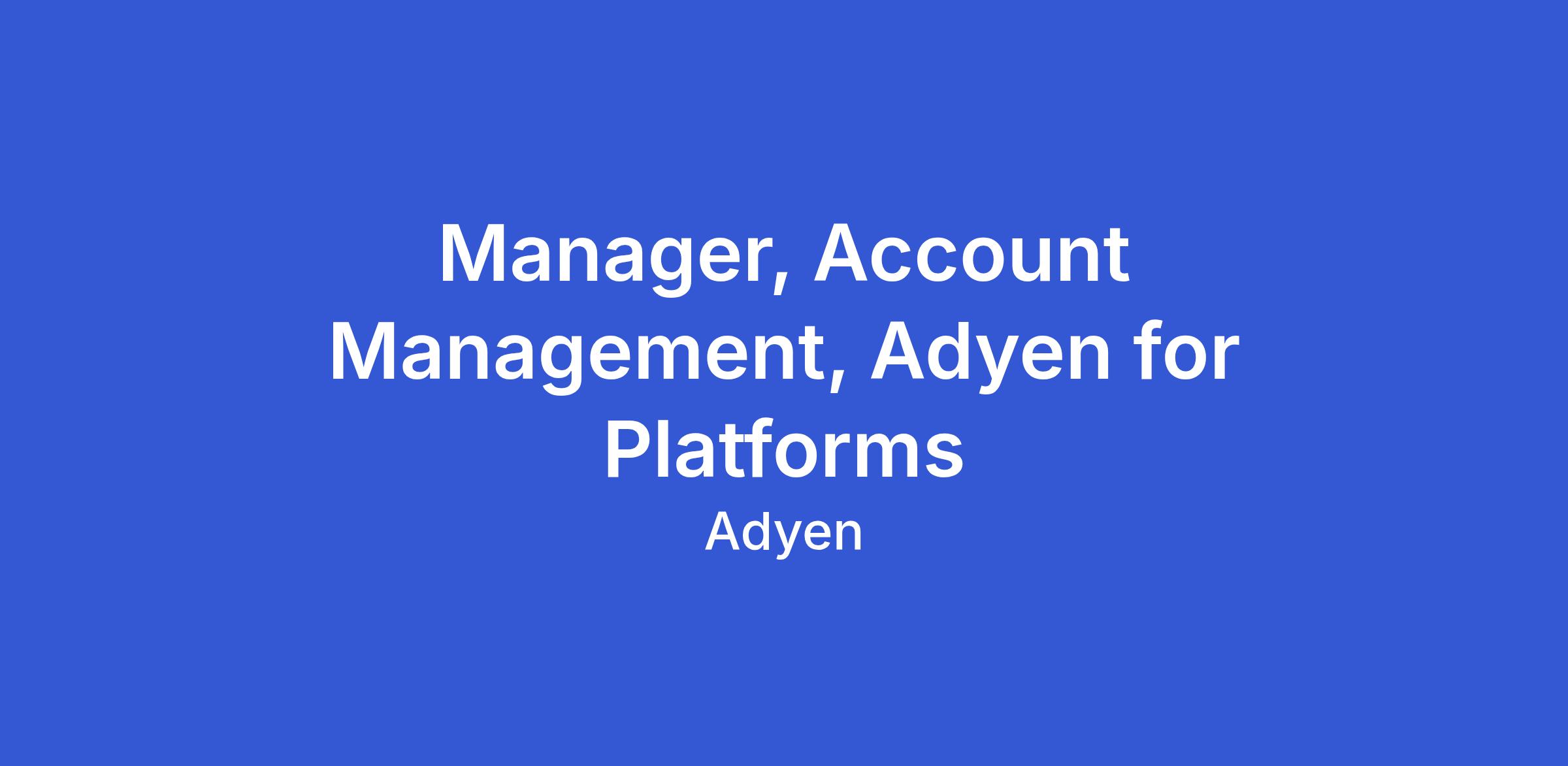 Manager, Account Management, Adyen for Platforms