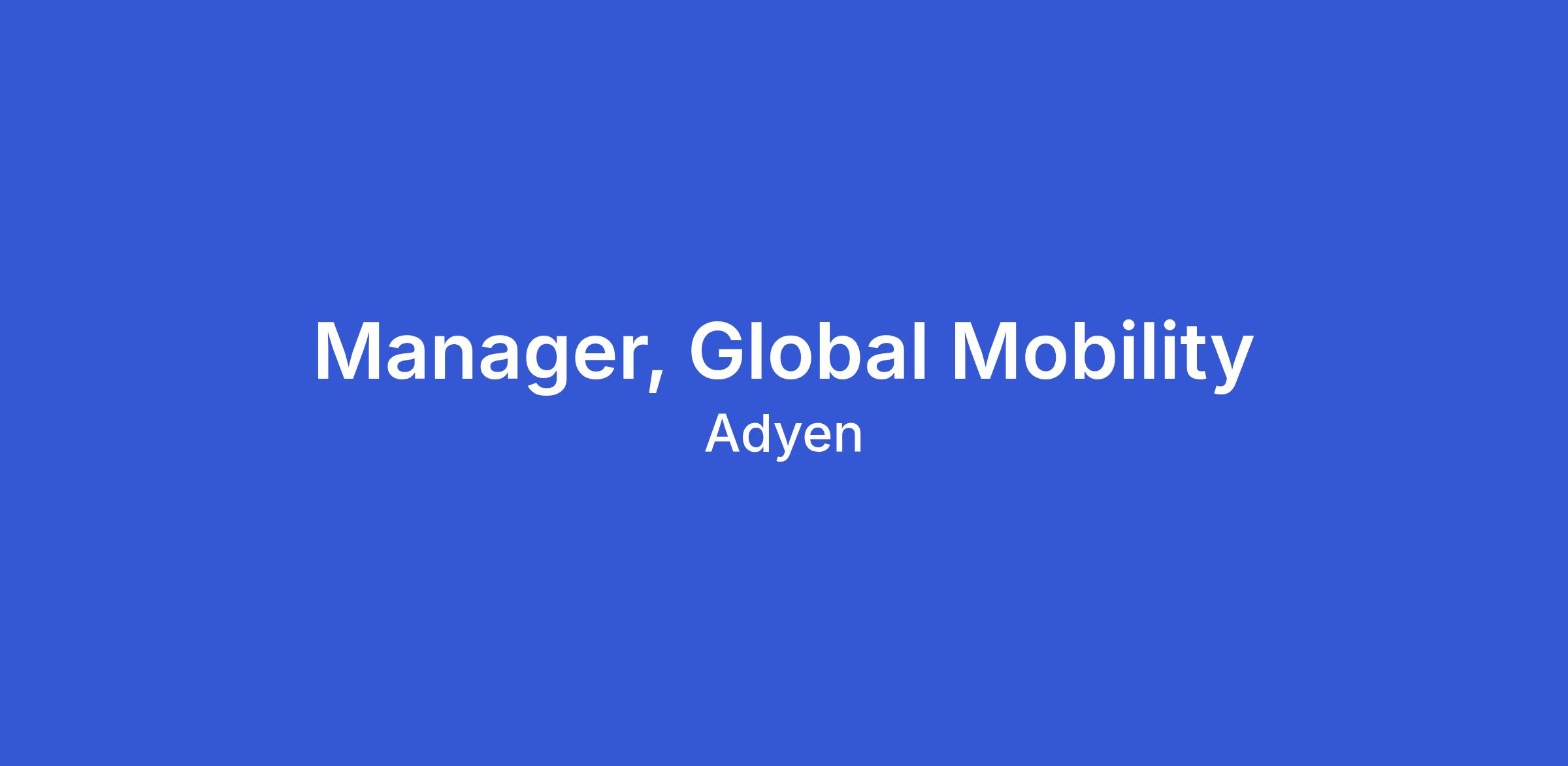 Adyen is seeking a Manager, Global Mobility who is excited to join the Global People team to contribute to the growth and scale of the company. Our ideal candidate thrives in an entrepreneurial environment, is highly data-driven, analytical, takes ownership, works collaboratively and is not afraid to roll-up-their-sleeves to get work done. This role is a new role at Adyen and will be located in San Francisco, CA.