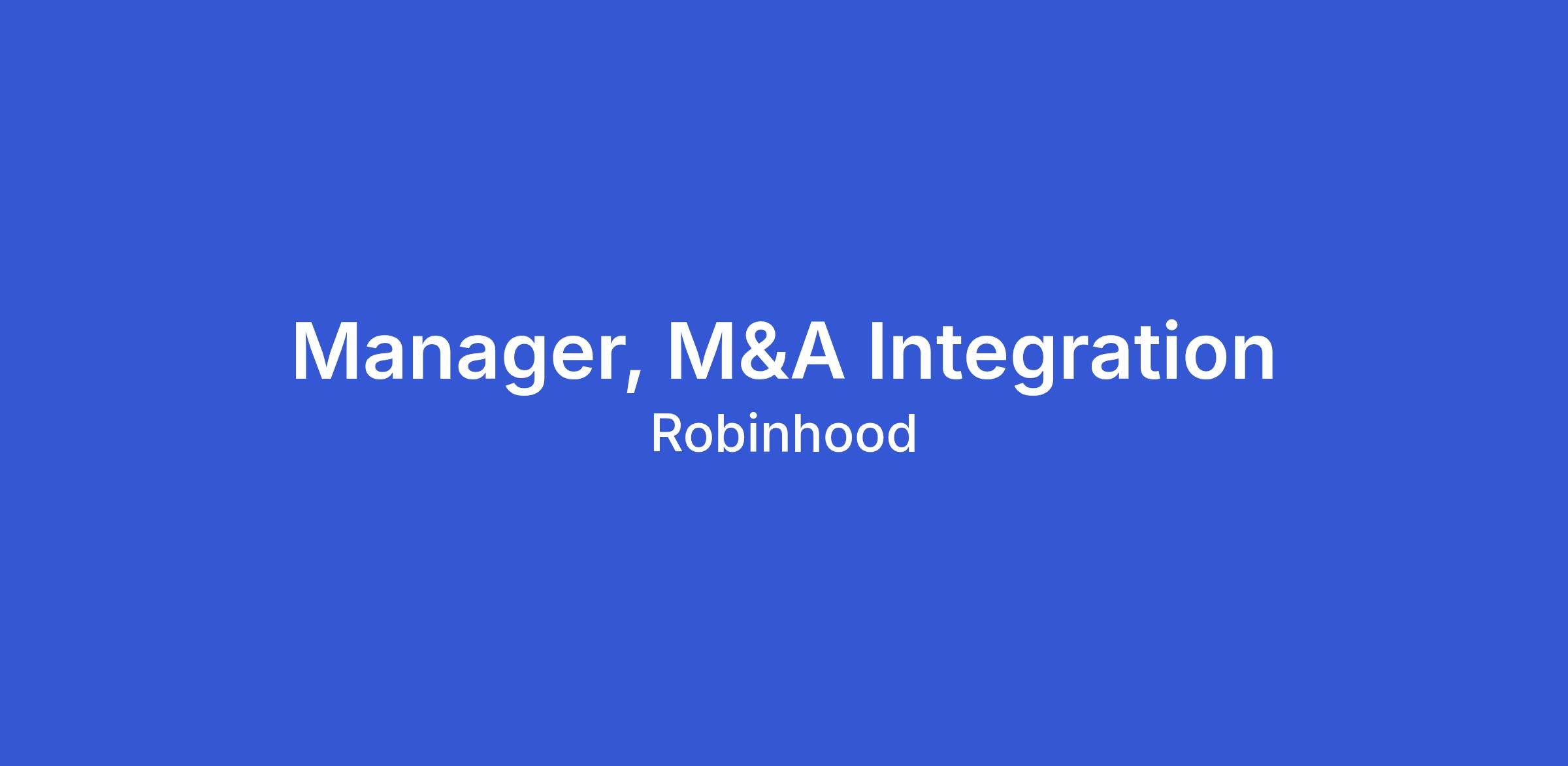 The Corporate Development Integration team’s mission is to build and execute thoughtful, fast integration strategies that unlock and amplify the value of every acquisition. We partner across the organization to strengthen Robinhood’s M&A integration capabilities by improving tools, playbooks, and processes. The team focuses on consistent execution, clear decision-making, and measurable outcomes that support successful integrations!