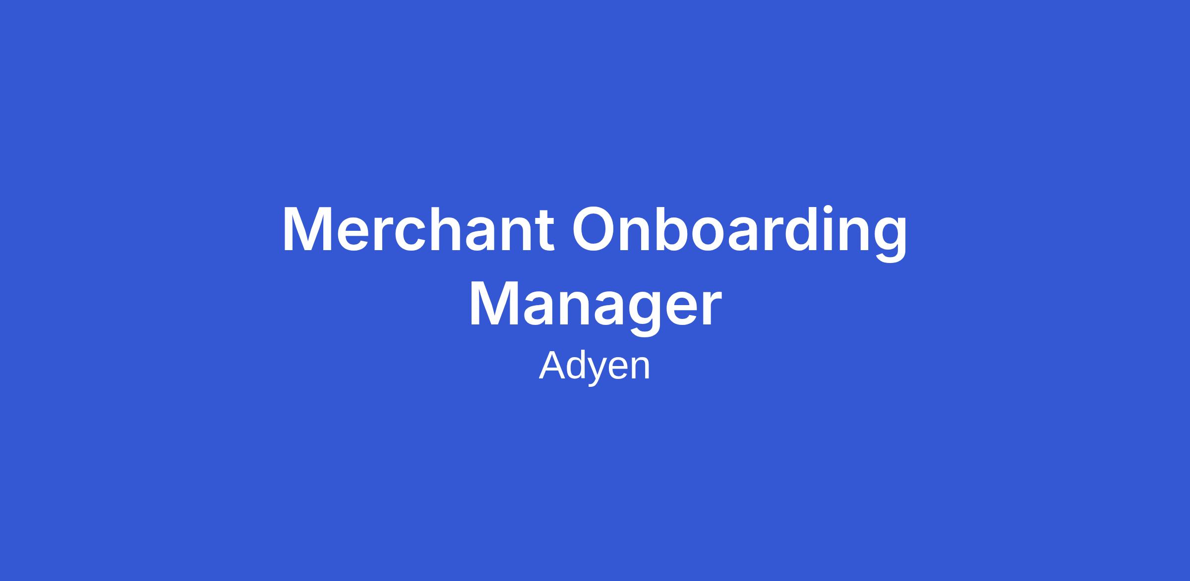 We are looking for a Merchant Onboarding Manager to join our Merchant Operations department. You will work closely with Sales Management, Compliance, Underwriting, Account Management, and other teams to guide merchants through the early stages of onboarding onto the Adyen platform.