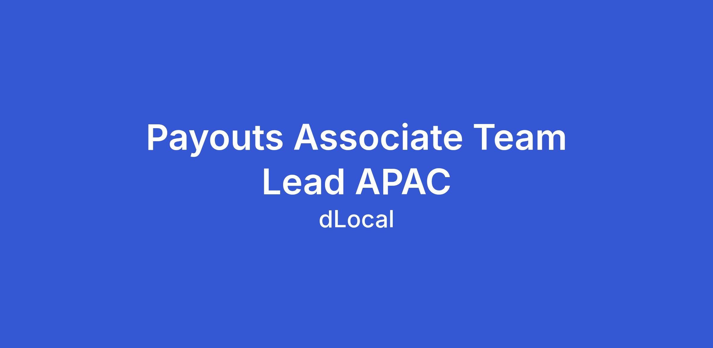 We are looking for a Payouts Associate Team Lead based in APAC to join our Payouts Operations team. The ideal candidate will join a team that takes full responsibility for carrying on the processing flows in different countries, iterating with different banks or partners, and looking to improve their performance.