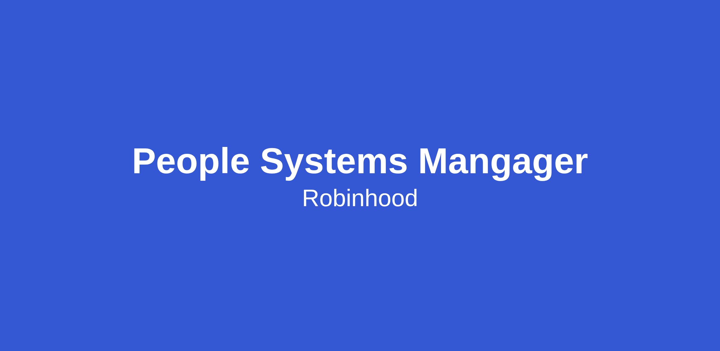 We’re looking for a People Systems Manager to help build and run the engine that powers Robinhood’s HR and Payroll systems. This role is both strategic and highly operational, combining hands-on technical execution with people leadership in a fast-paced, high-growth environment.