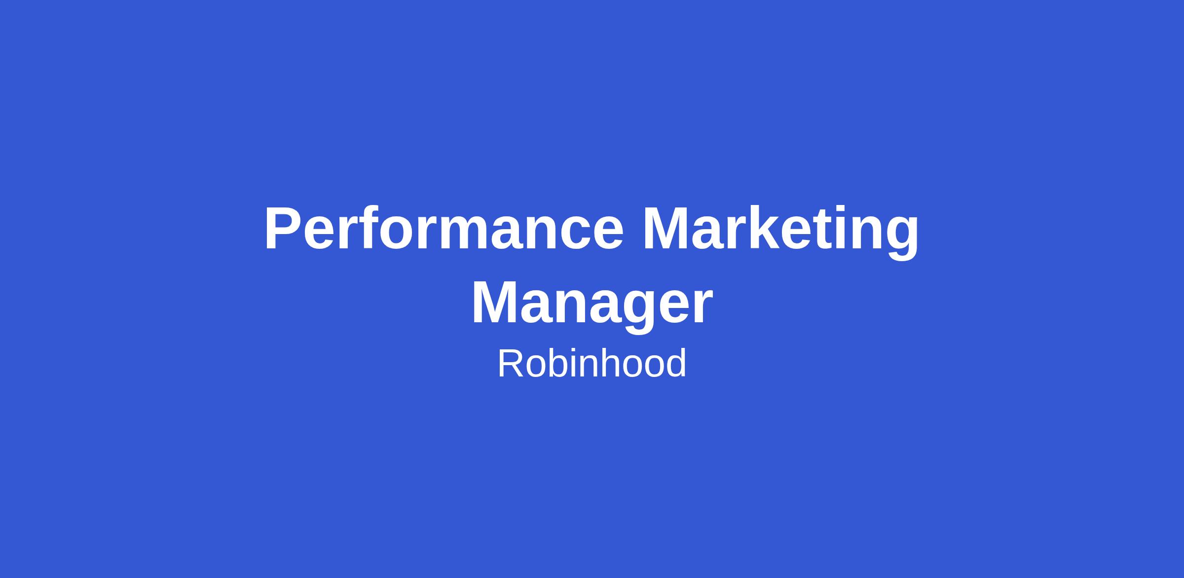 The Performance Marketing team’s mission is to build scalable and measurable growth across Robinhood’s core products. We're a team of analytical marketers and channel experts who thrive on driving business results through experimentation, collaboration, and continuous optimization!