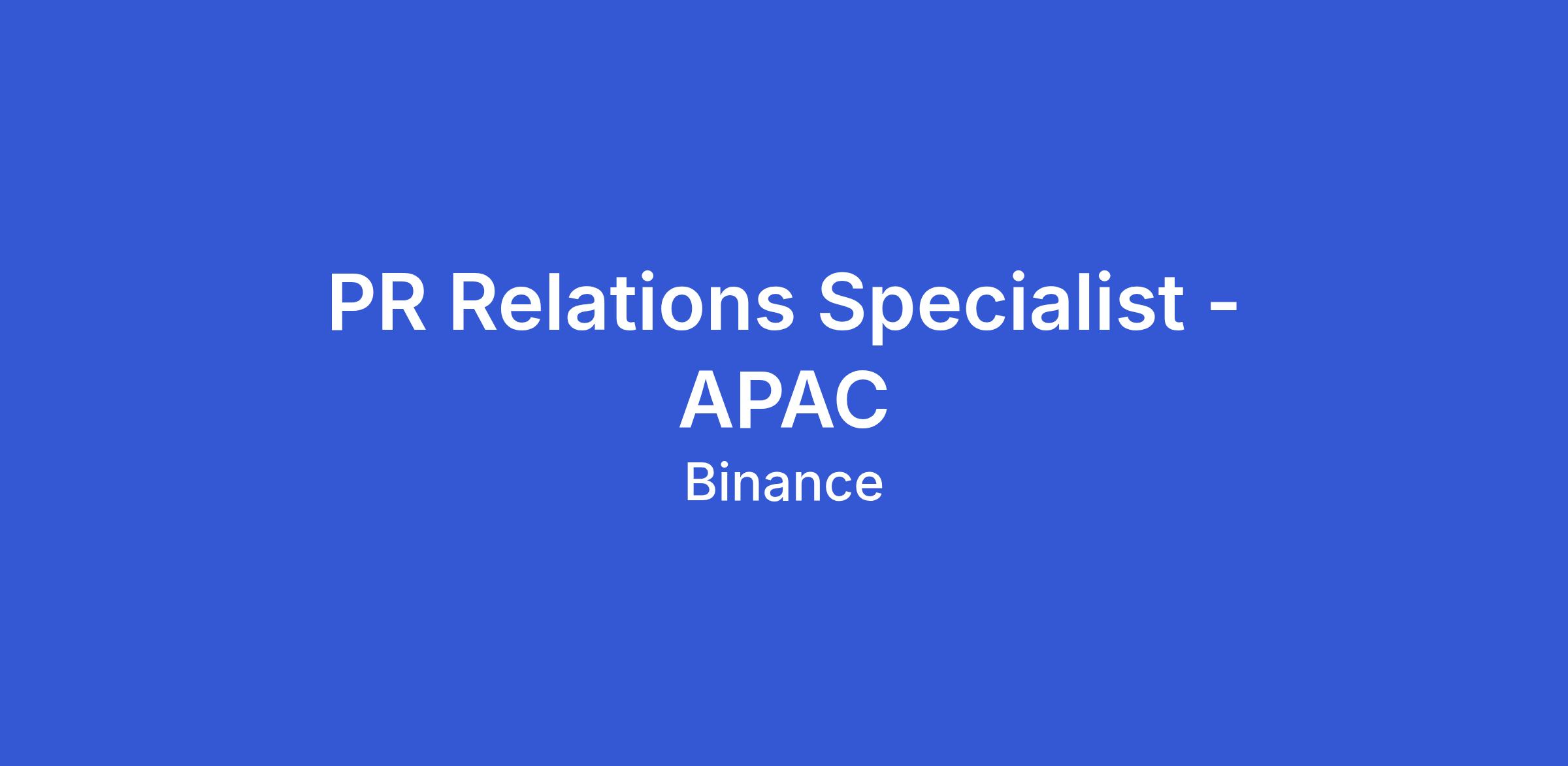 We are looking for a motivated and personable Public Relations Specialist to join our growing PR & Communications team in Singapore. This role focuses on building and maintaining strategic relationships with key industry voices, content creators, and community leaders — supporting Binance's brand presence and communications initiatives across the APAC market.
