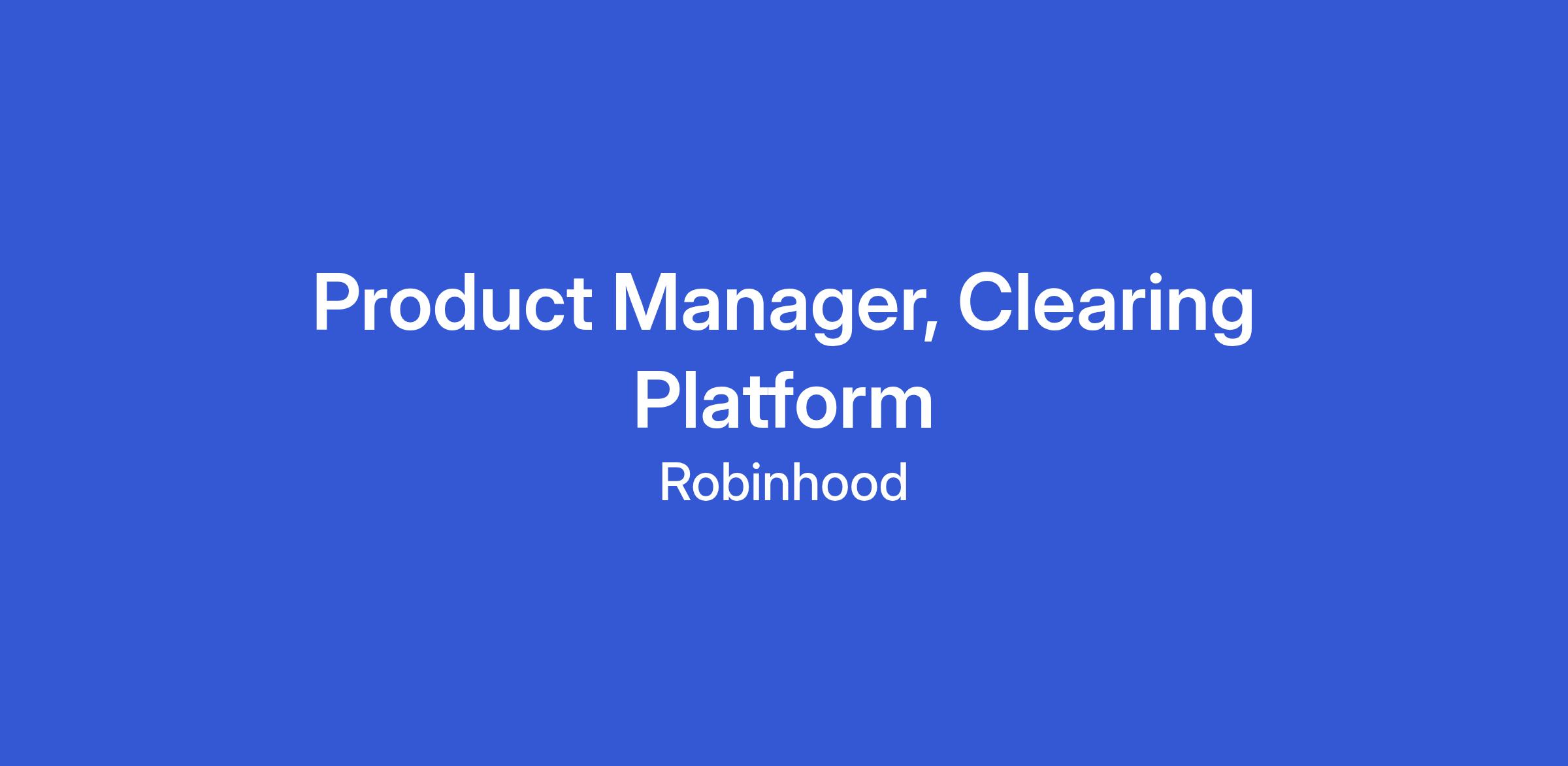 The Clearing Platform Team is a part of Brokerage Platform and is responsible for the post trade services that power Robinhood’s self-clearing broker dealer. The domain owned by the team is large and varied including brokerage functions like clearing, settlement, books and records, asset servicing, and trade reporting. As a Product Manager on the Clearing Platform team, you will be tasked with owning a strategy to constantly improve these core areas as well as build net new functionality to support the launch of customer facing products. You’ll be responsible for leading teams to develop products that improve the everyday lives of our customers. You’ll work with experts in data, design, engineering, marketing, operations, and research to bring ideas to life that will help us democratize our financial system.