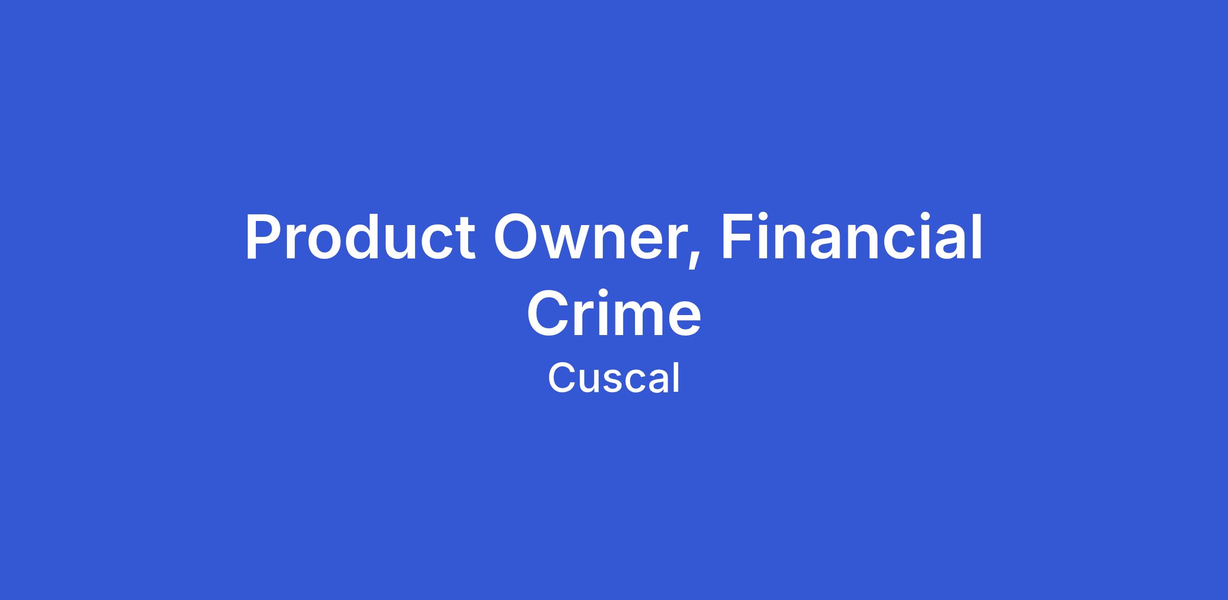 We are looking for a Product Owner to join our Product Team within our Financial Crime Domain