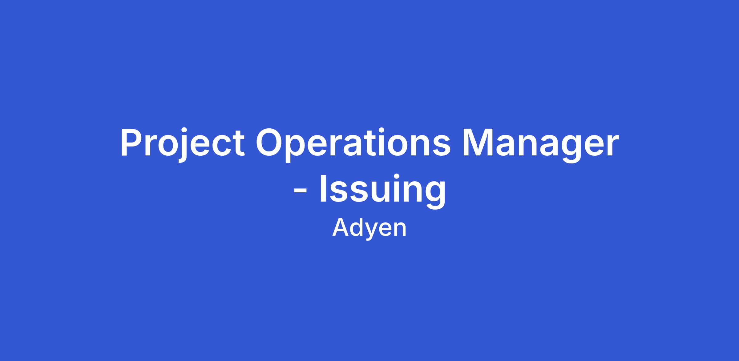 As a Project Operations Manager specializing in Issuing to join our Professional Services team in Amsterdam. Your focus will be the delivery and execution of complex global Issuing and financial product projects for our clients. Your role will be focused on advising on our product offering, managing expectations in terms of the availability and dependencies, as well as having a long term vision and strategy for the implementation of the project.