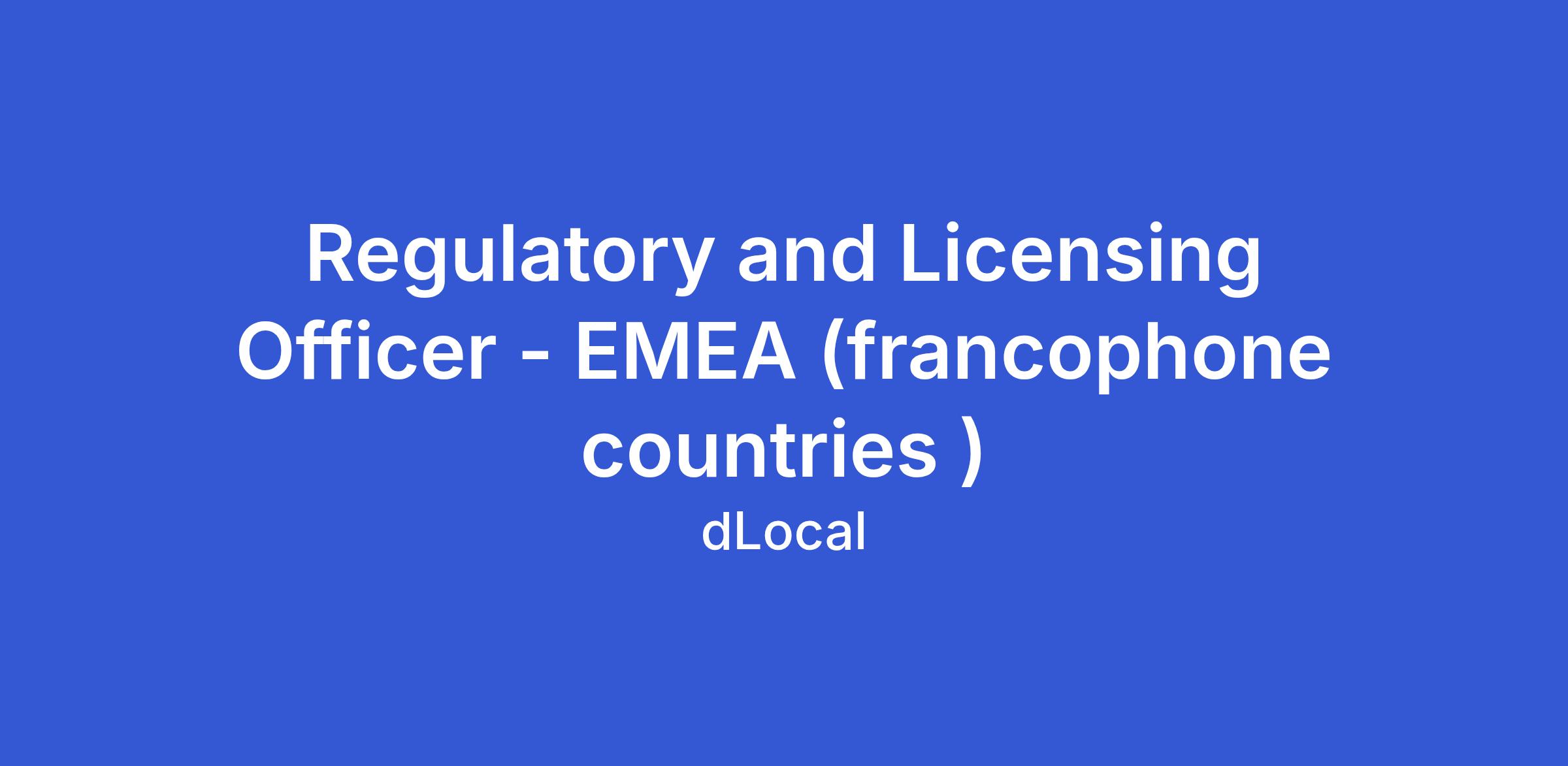 As our Regulatory and Licensing Officer based in with the Francophone African region, you will support all Compliance and Regulatory matters related to Dlocal’s business and operation and will help maintain oversight for Dlocal’s legal entities. In this role, you will help enable business growth while serving as a gatekeeper to prevent regulatory, legal, and reputational harm.