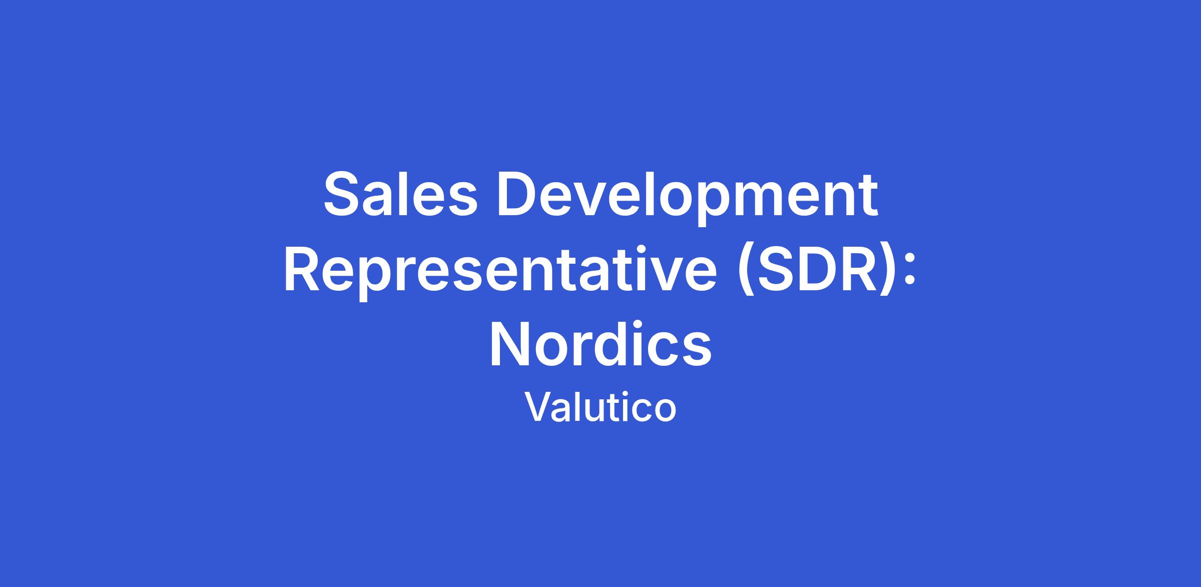 What are we looking for: An enthusiastic Sales Development Representative (SDR) for the Nordic region to become a vital part of our growing team.