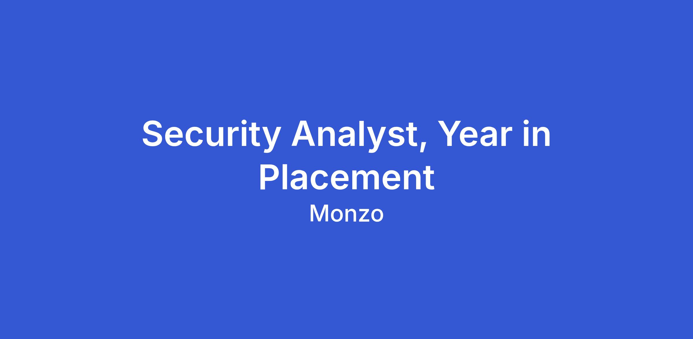 We are seeking 2 highly motivated and passionate individuals to join our Security team at Monzo for placement for a duration of 12 months. This year in placement offers an opportunity for students pursuing studies in Information Security to gain practical experience in a dynamic fintech environment. It will consist of two six-month rotations in our Information Security and Security Operations Squads.