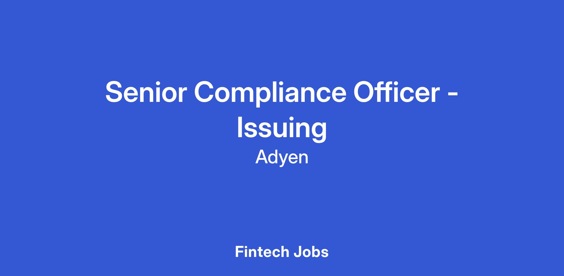 We are seeking a proactive and experienced Senior Issuing Card Compliance Officer to join our fast-paced Compliance team in Amsterdam. This role is crucial for supporting our rapidly expanding EU and UK Issuing business.