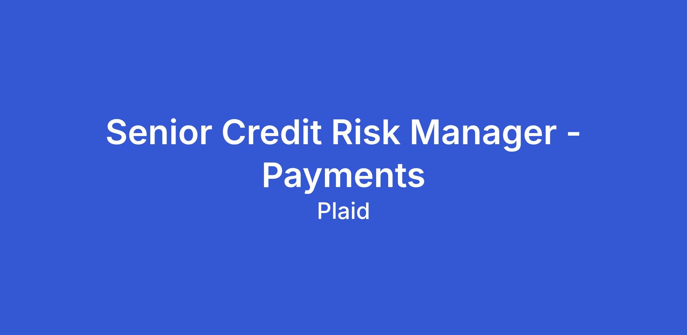 As a Senior Credit Risk Manager on the Transfer Operations team, you will own the portfolio-level credit risk management of Plaid Transfer, helping ensure that money movement remains fast, reliable, and financially safe as the business scales.