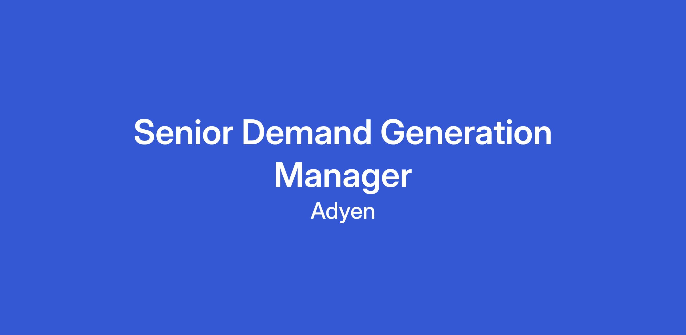 At Adyen, we are at the forefront of financial technology, driving innovation in payment solutions for enterprise businesses globally. We are seeking a strategic and results-driven Senior Demand Generation Manager to launch multi-channel marketing campaigns that win the hearts, minds, and wallets of merchants in North America.
