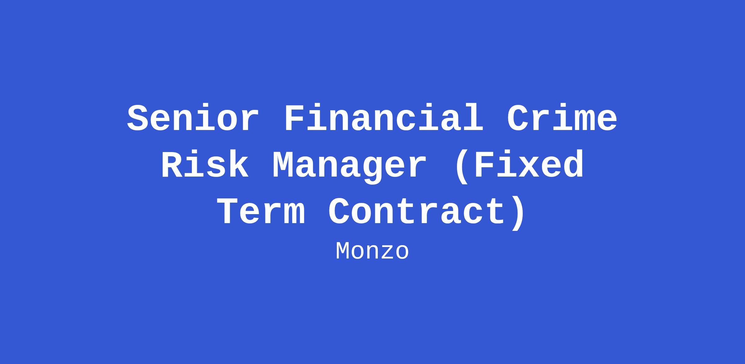 As a Senior Financial Crime Risk Manager who can support our European Risk & Compliance function, you'll play a critical role in ensuring that Monzo Bank Europe implements solutions to comply with our regulatory obligations and effectively manage risk. This is a 12 month Fixed Term Contract.