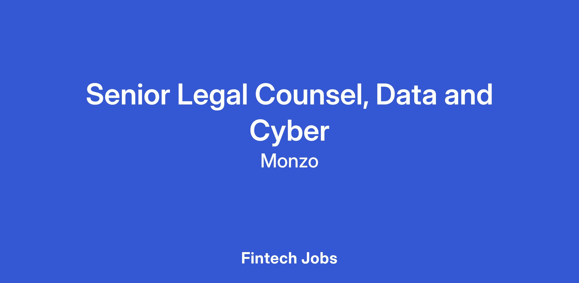 We're looking for a Senior Legal Counsel, Data & Cyber to join our team at Monzo and help us build one of the best, most innovative banks in the world.