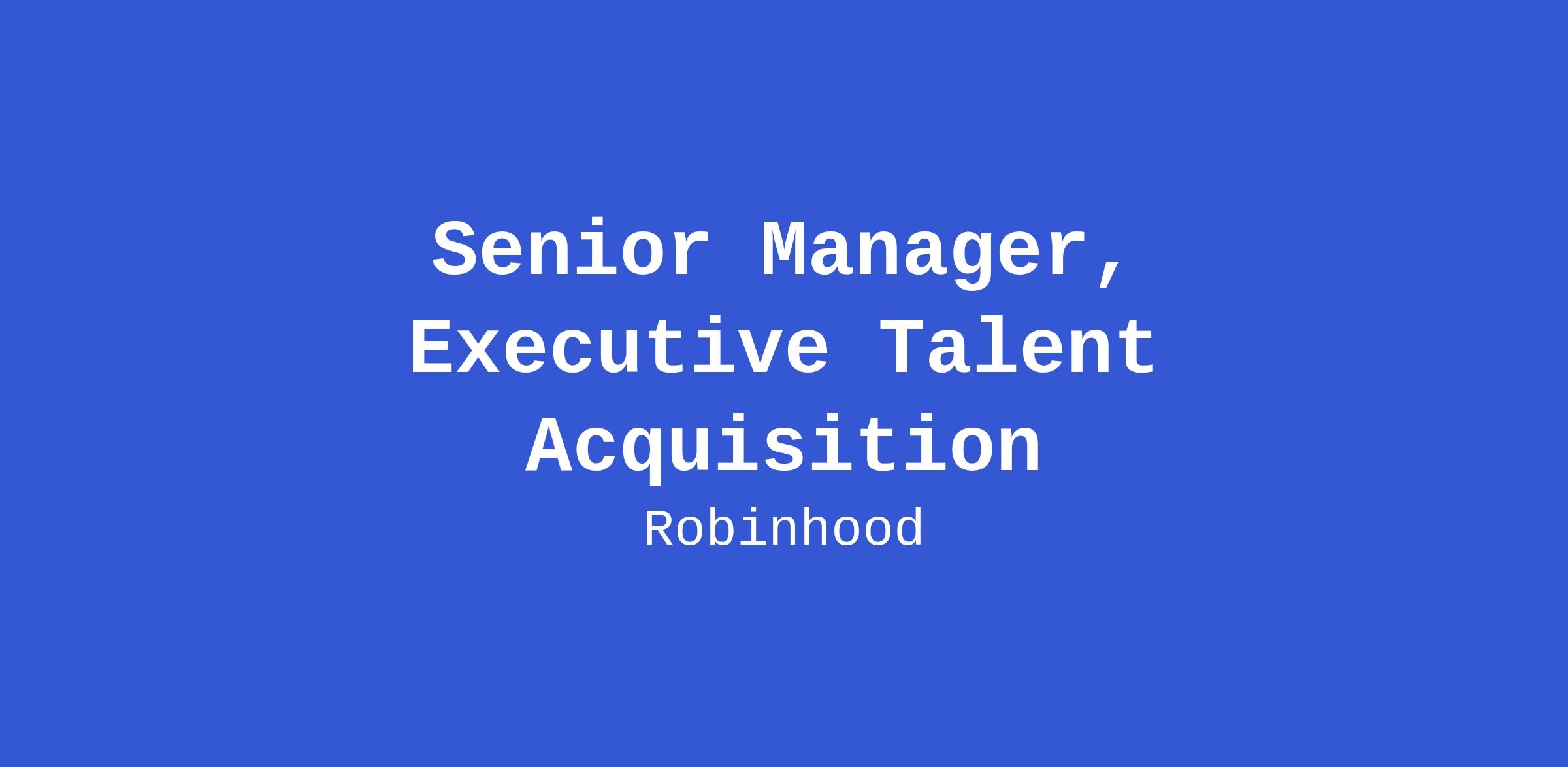 The Executive Talent Acquisition (TA) team’s mission is to identify, engage, and hire exceptional leaders who will shape Robinhood’s strategy, scale, and success! We build trusted partnerships across the business, driving excellence in every stage of the executive hiring process and creating a consistent, engaging experience for all stakeholders.