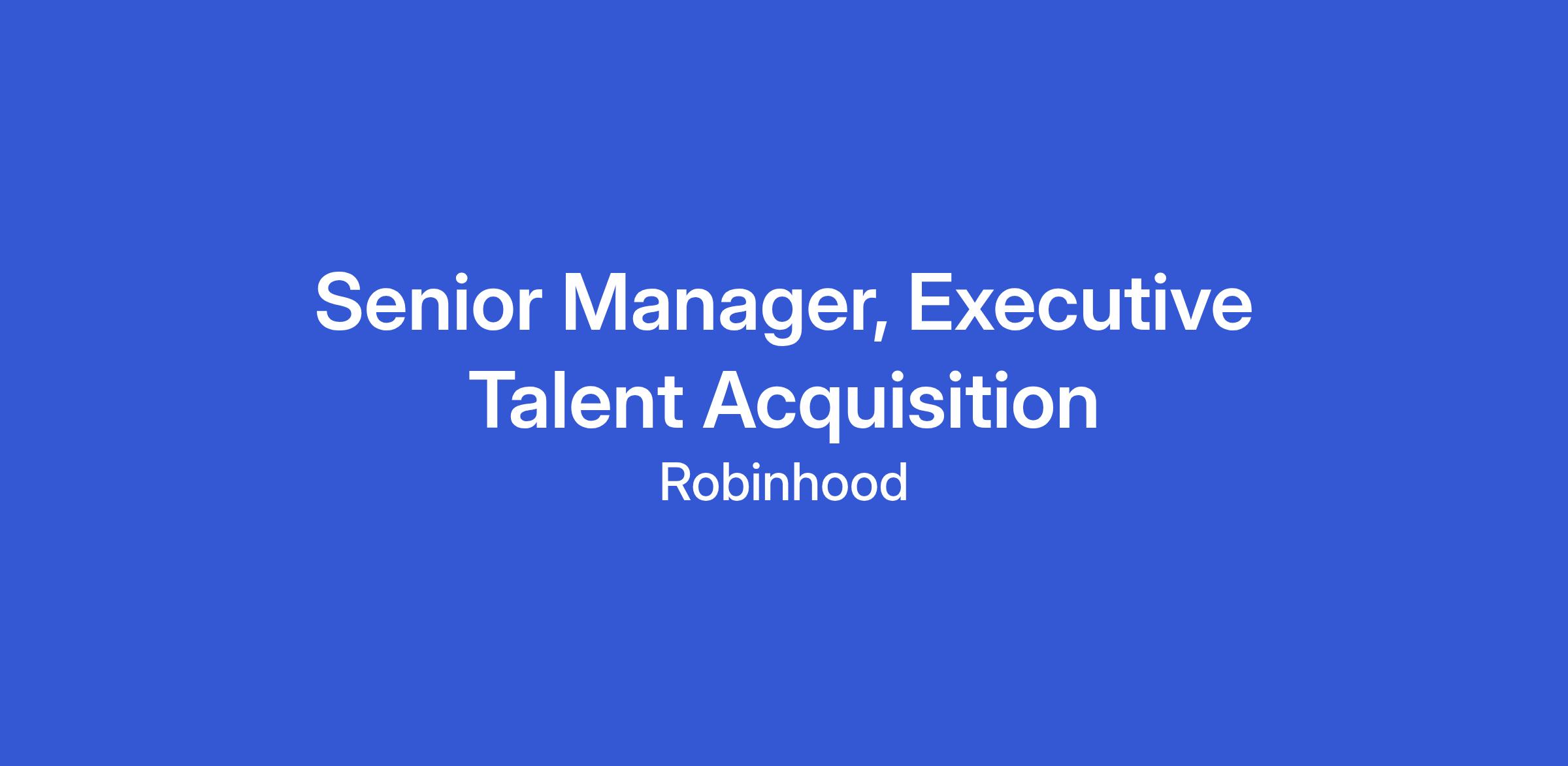 The Executive Talent Acquisition (TA) team’s mission is to identify, engage, and hire exceptional leaders who will shape Robinhood’s strategy, scale, and success! We build trusted partnerships across the business, driving excellence in every stage of the executive hiring process and creating a consistent, engaging experience for all stakeholders.
