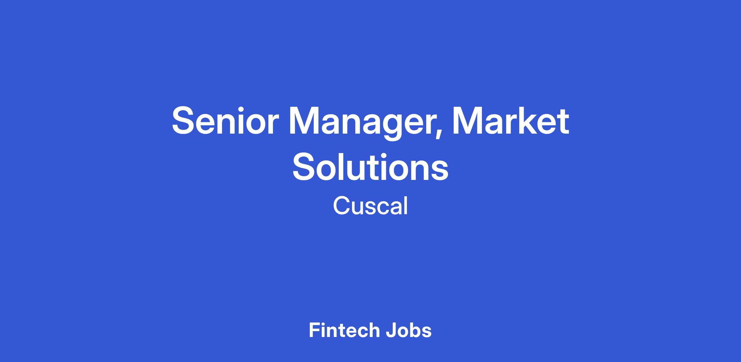 The Senior Manager, Market Solutions is responsible for partnering with Business Development stakeholders to identify and drive new opportunities, and position Cuscal solutions to capture new business. Reporting to the Head of Strategic Growth, this role blends cross-functional collaboration on product roadmaps and go-to-market strategies with building strategic relationships across key growth segments to evaluate market and solution viability. Responsibilities for the role include: