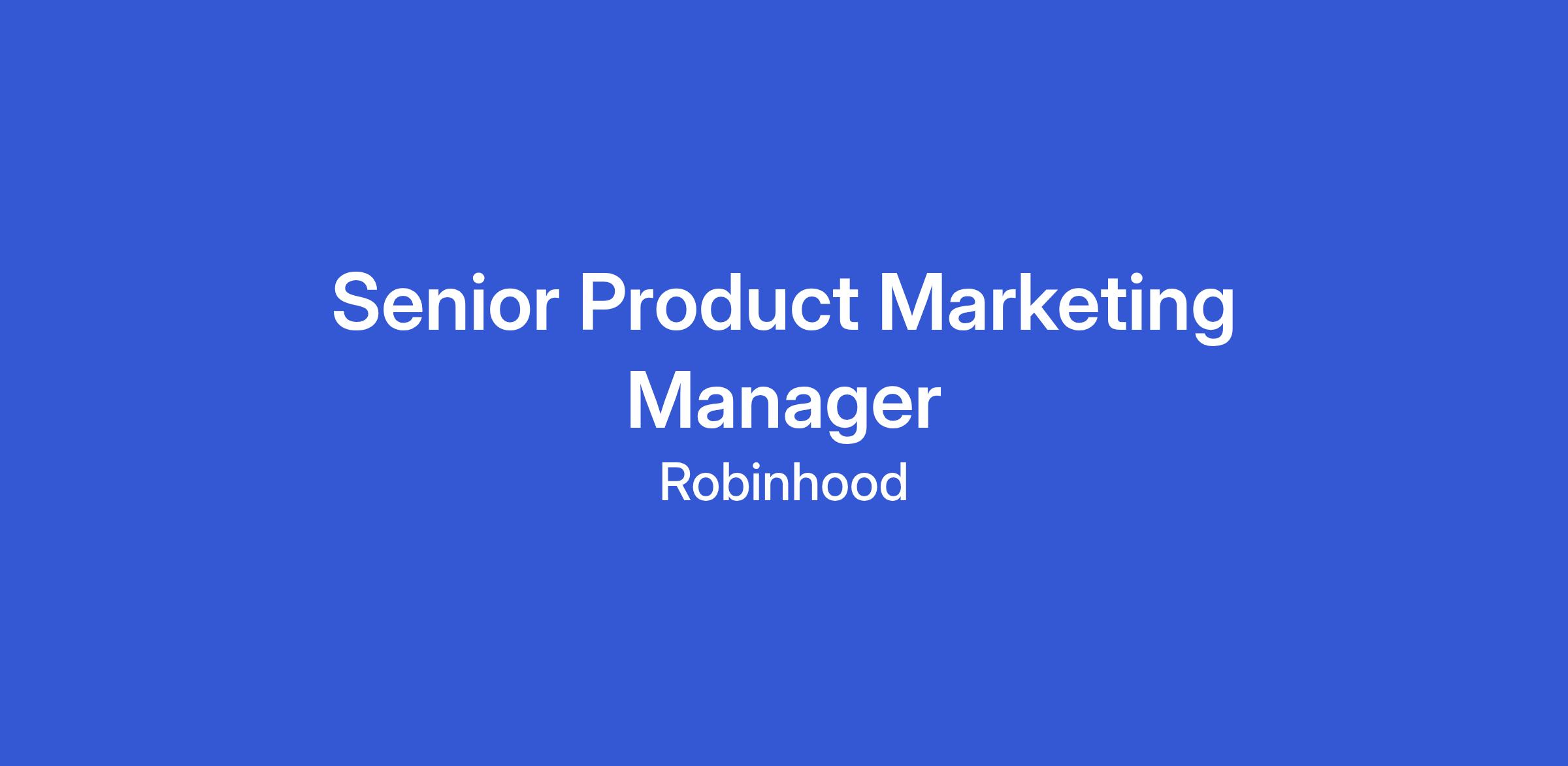 As a Senior Product Marketing Manager, you’ll be responsible for driving go-to-market strategies and executing marketing campaigns across multiple product categories. You’ll partner with product management, creative, research, legal, and others to bring new features and products to market, fuel customer growth, and shape Robinhood’s product narrative.