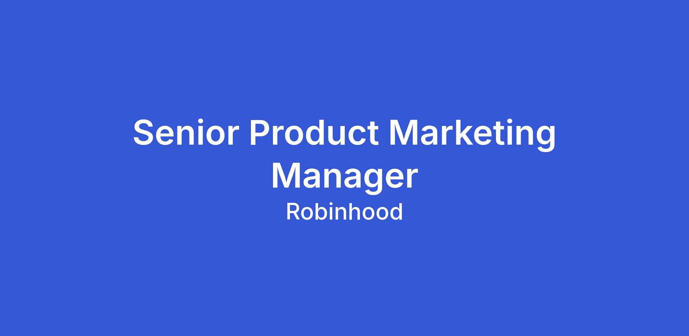 As a Senior Product Marketing Manager, you’ll be responsible for driving go-to-market strategies and executing marketing campaigns across multiple product categories. You’ll partner with product management, creative, research, legal, and others to bring new features and products to market, fuel customer growth, and shape Robinhood’s product narrative.