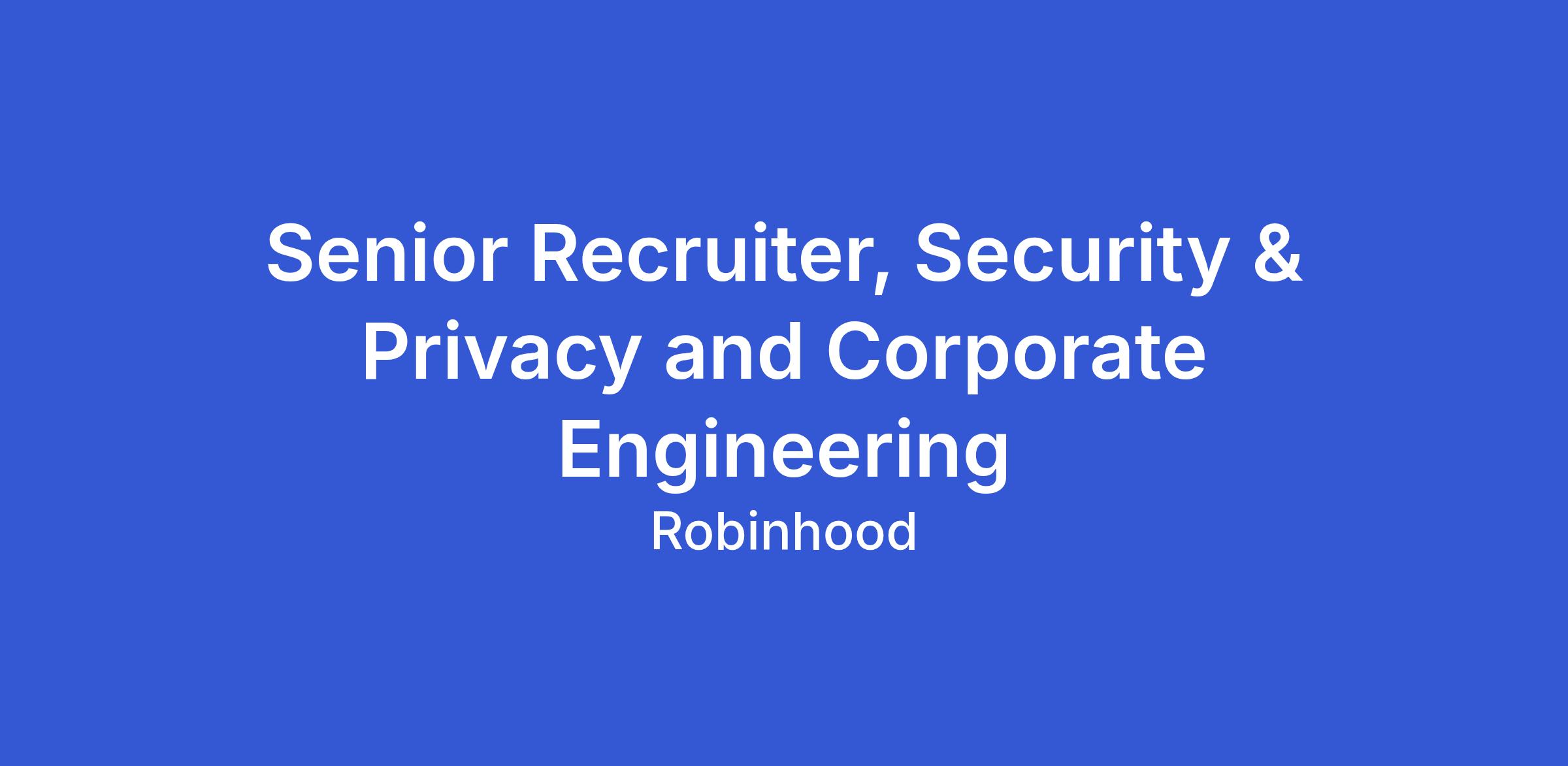 As a Senior Recruiter focused on Security & Privacy, you will lead full-cycle recruiting efforts for highly specialized technical roles across Security and Privacy, with additional support for Corporate Engineering positions. You will partner directly with hiring managers to define hiring strategies, align on candidate profiles, and manage searches from intake through offer. You will serve as a trusted advisor on talent market trends, pipeline health, and interview best practices. Your work will directly support the protection of customer data and the reliability of the systems that power Robinhood’s products!