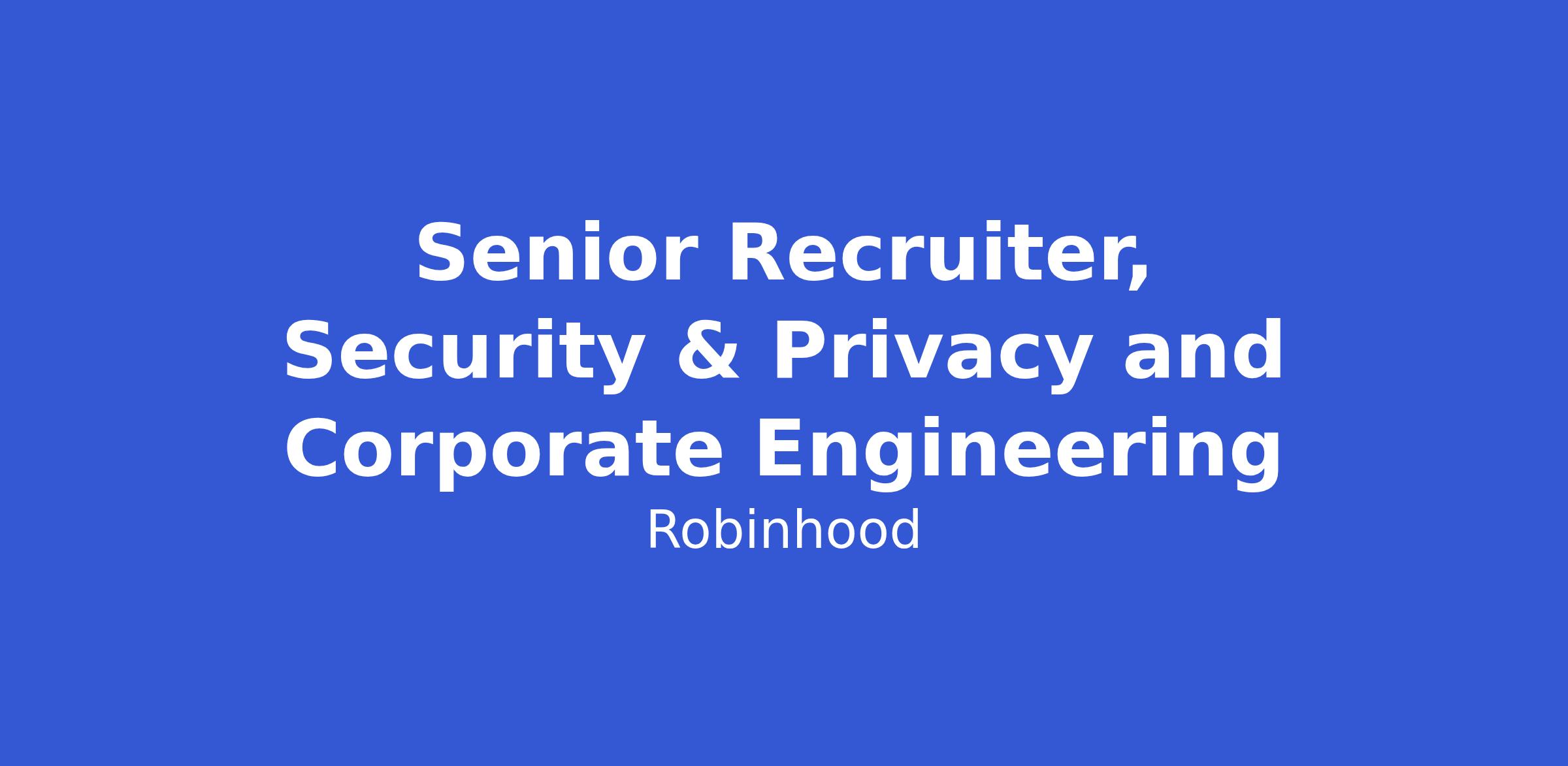 The Technical Recruiting team partners closely with Engineering to attract and hire talent that enables Robinhood to achieve its Mission to Democratize Finance for All. We focus on building strong, representative candidate pipelines and delivering a thoughtful, consistent hiring experience. This team works closely with Security, Privacy, Infrastructure, and Corporate Engineering leaders to ensure hiring plans align with business priorities and long-term growth. We are committed to clear communication, data-informed decisions, and continuous improvement across the recruiting lifecycle.