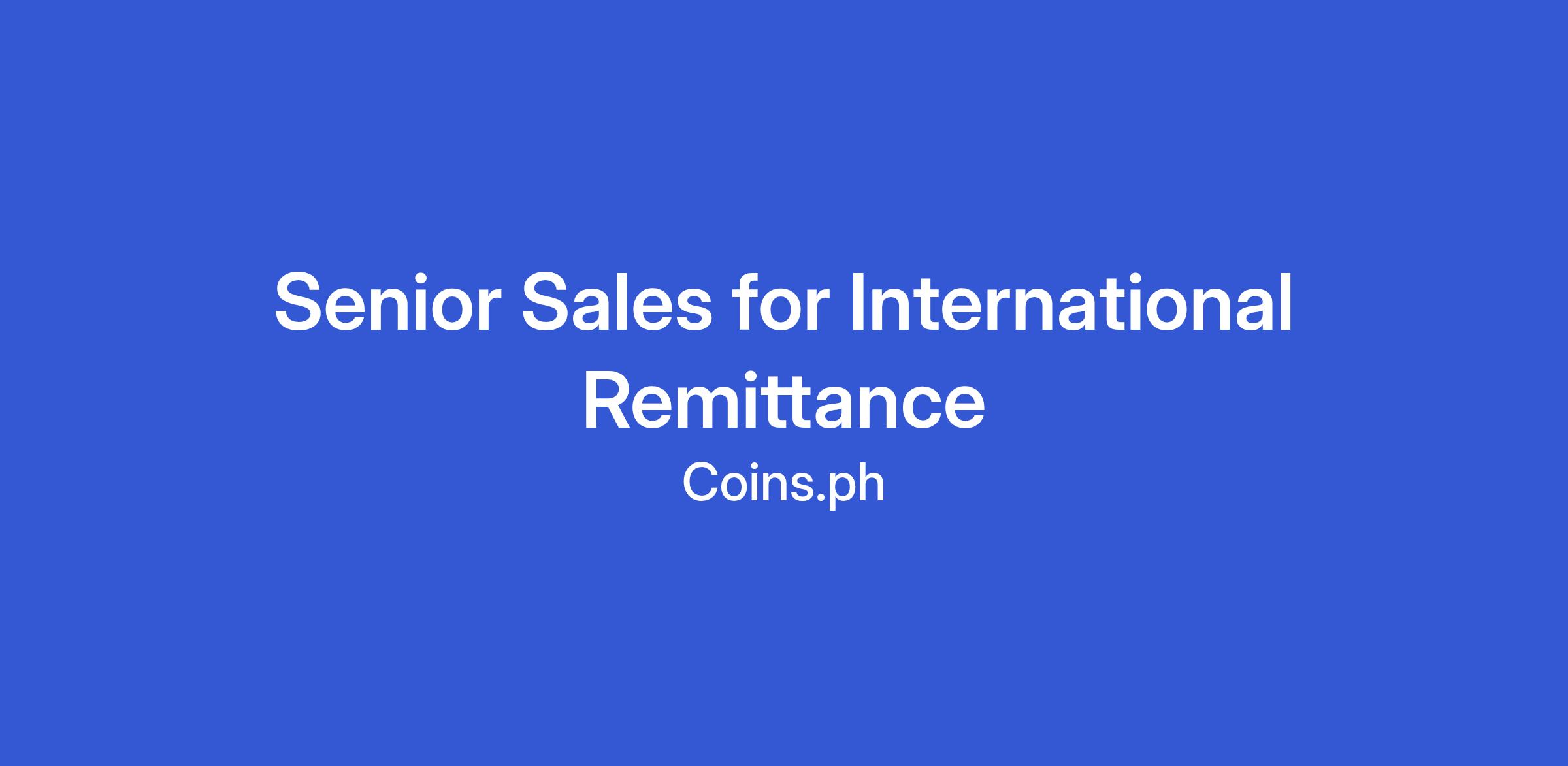 Senior Sales for International Remittance