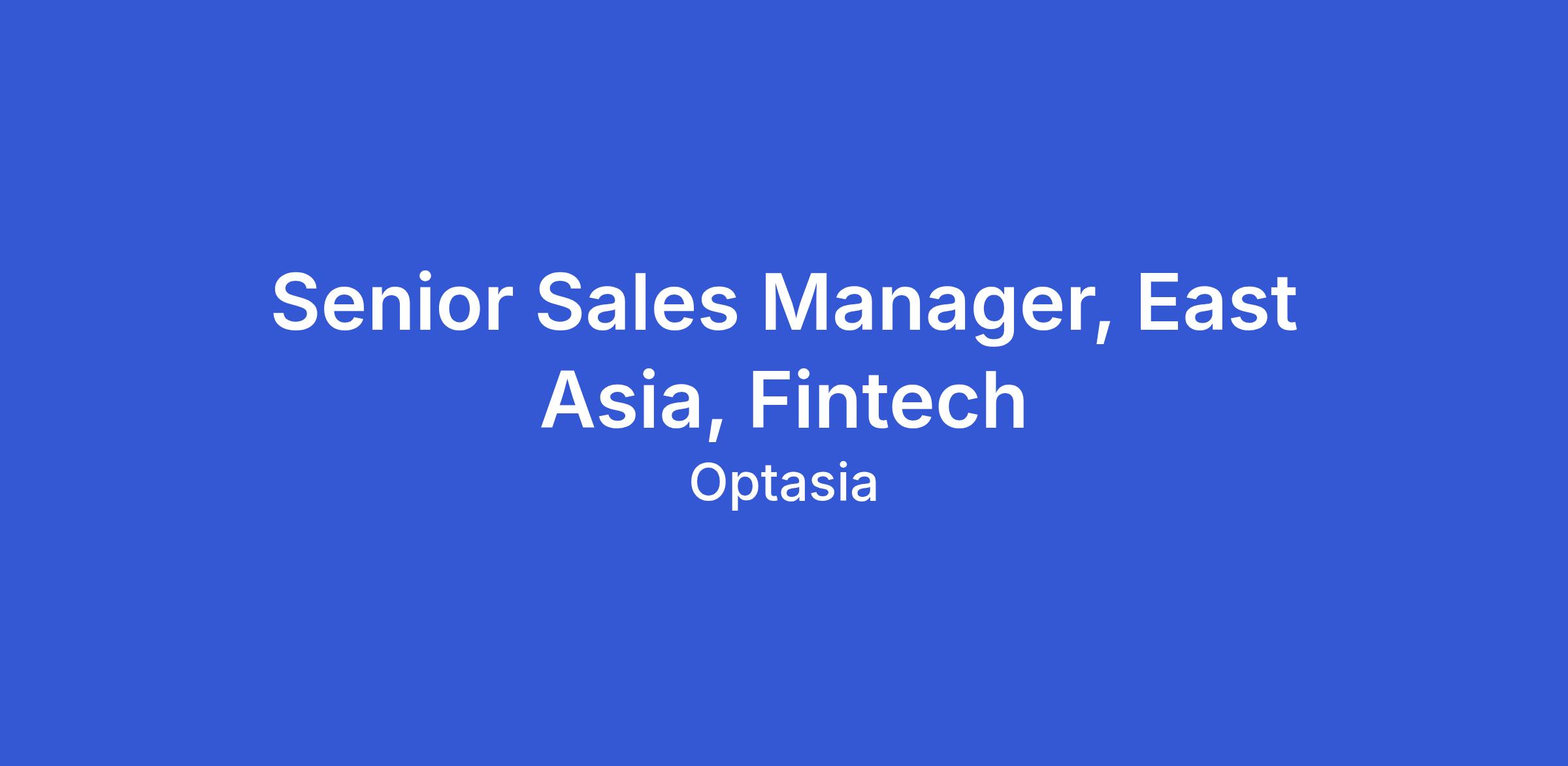 We are seeking a dynamic and experienced Senior Sales Manager to lead our commercial efforts in the East Asia & Pacific region. The successful candidate will drive strategic sales initiatives, expand market presence, and identify new growth opportunities for Optasia’s cutting-edge products and services. This is a high-impact leadership role that requires a seasoned sales professional with deep market knowledge and a proven track record of success.