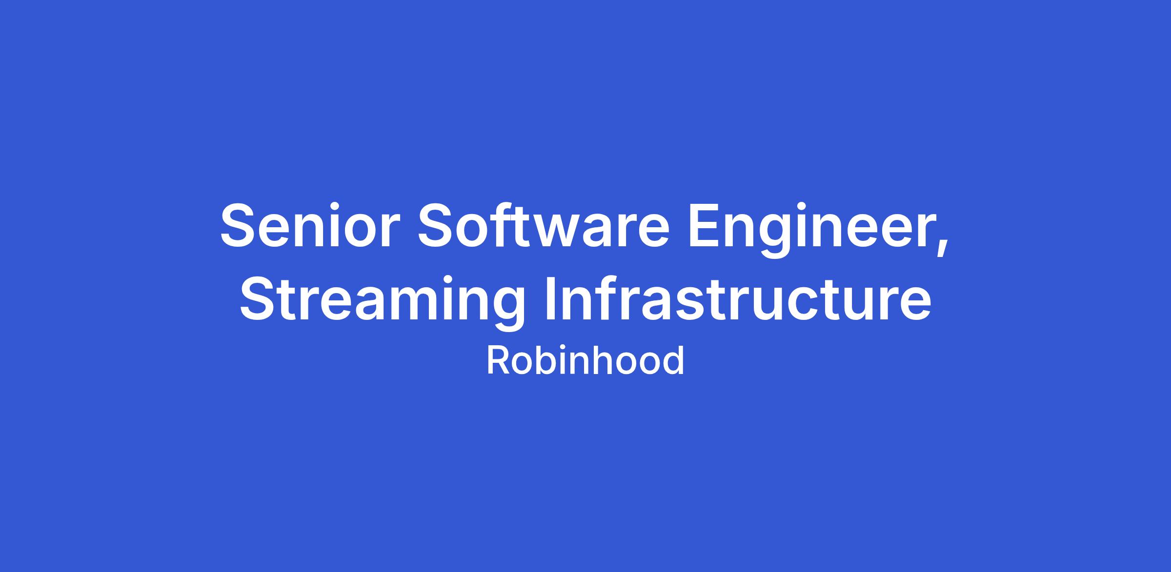 The Streaming Platform team’s mission is to enable real-time, reliable, and scalable data streaming across Robinhood’s products and infrastructure. We build and maintain foundational platforms that power communication between services and unlock streaming analytics across the company. Our systems are critical to Robinhood’s ability to build innovative financial products and deliver seamless experiences to our customers!