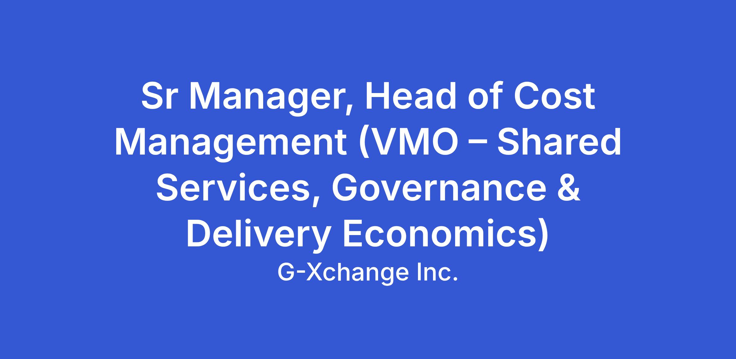 Sr Manager, Head of Cost Management (VMO – Shared Services, Governance & Delivery Economics)
